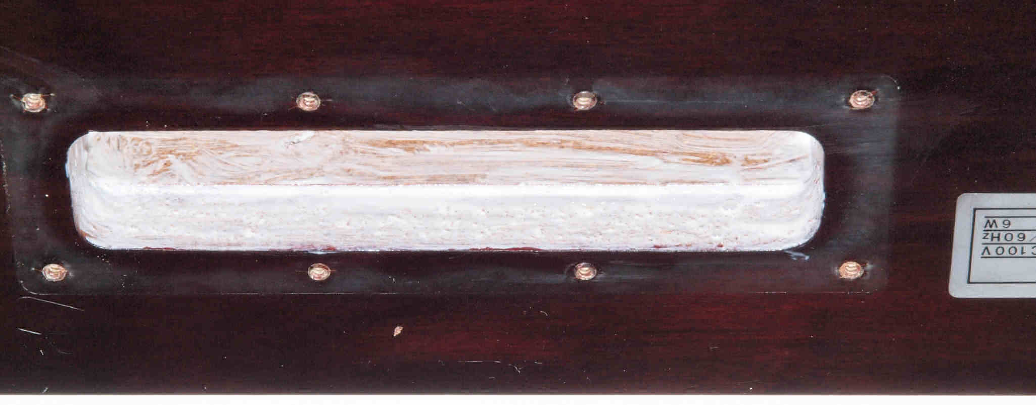 W9. 修理後 操作部穴。 キズを消す為と割れを防ぐのに、ラッカーを吹く。
