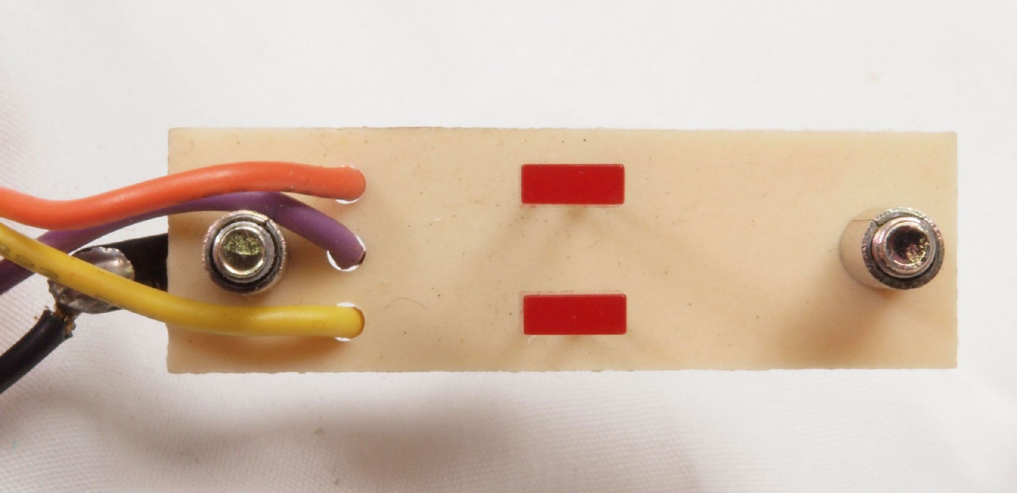 W48. 修理中 本体下、 端子取付け部、反対側。 水性木工ボンドを塗布する。