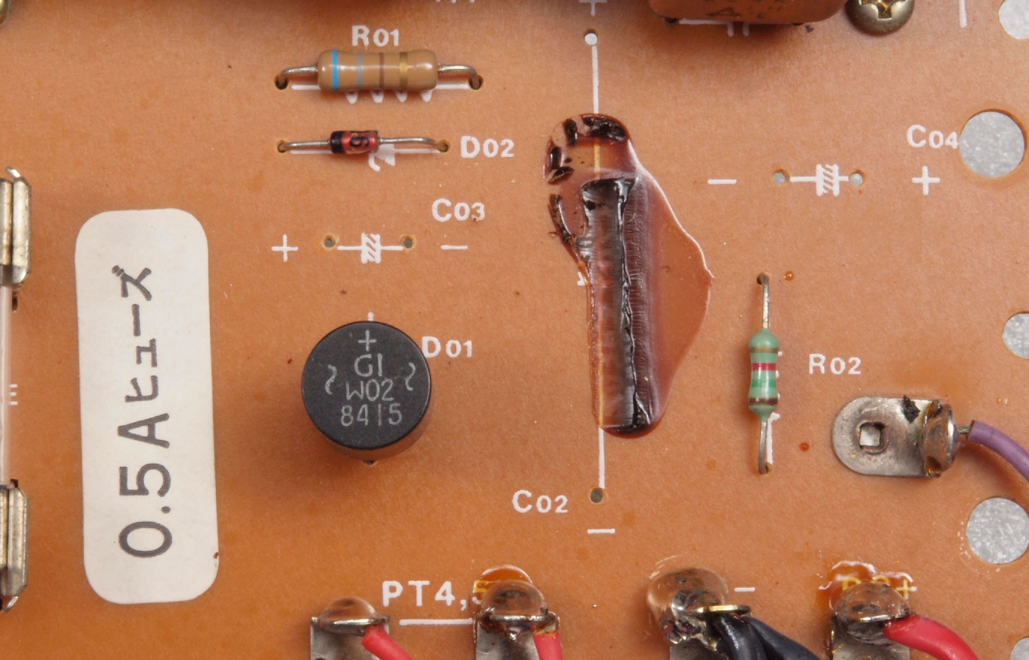 C25. 修理前 電源・ヒューズ基板裏