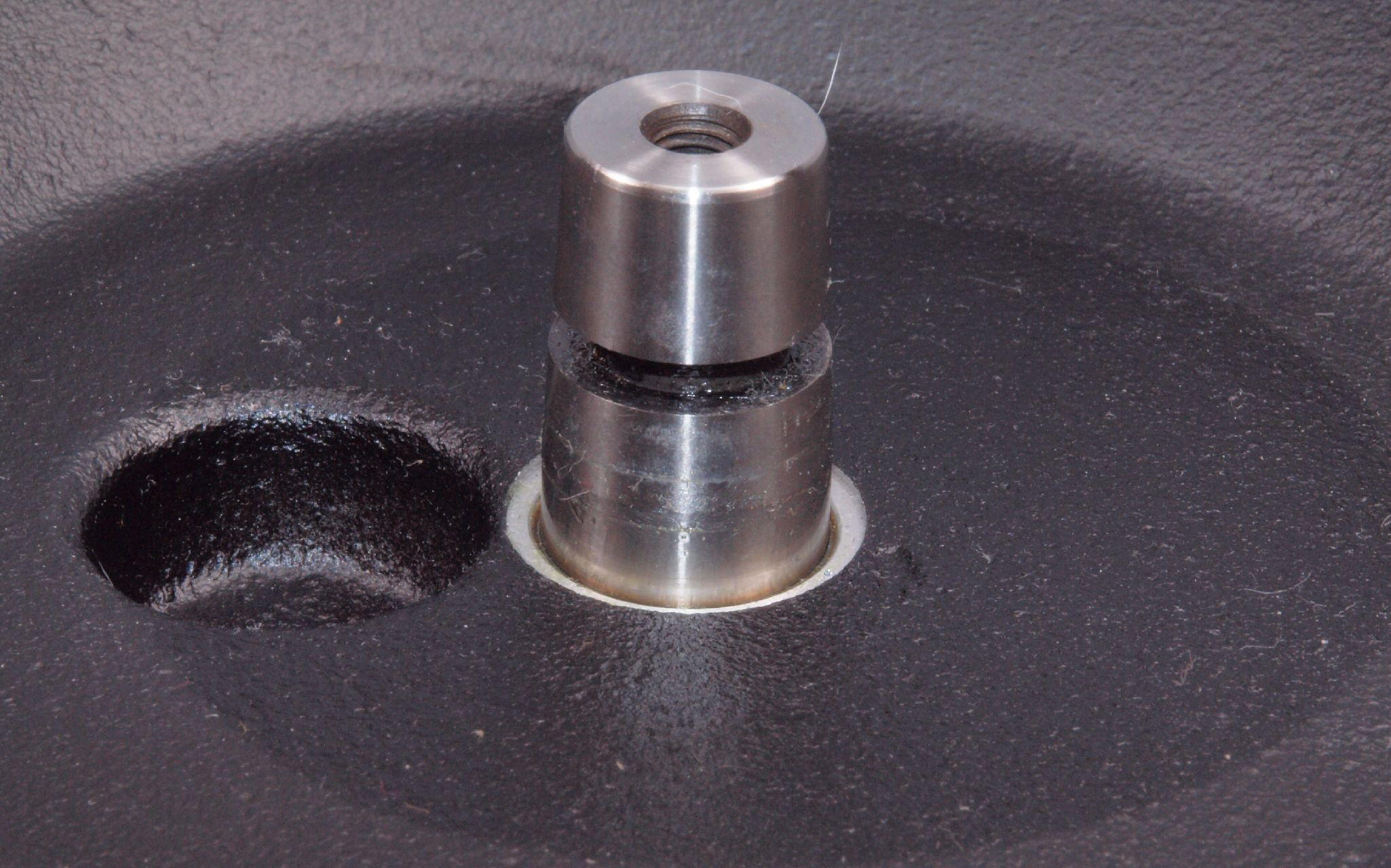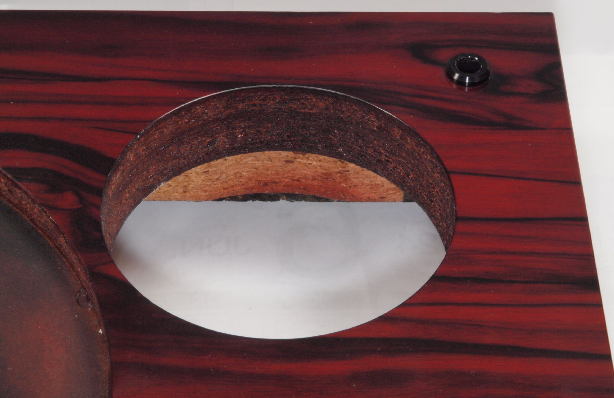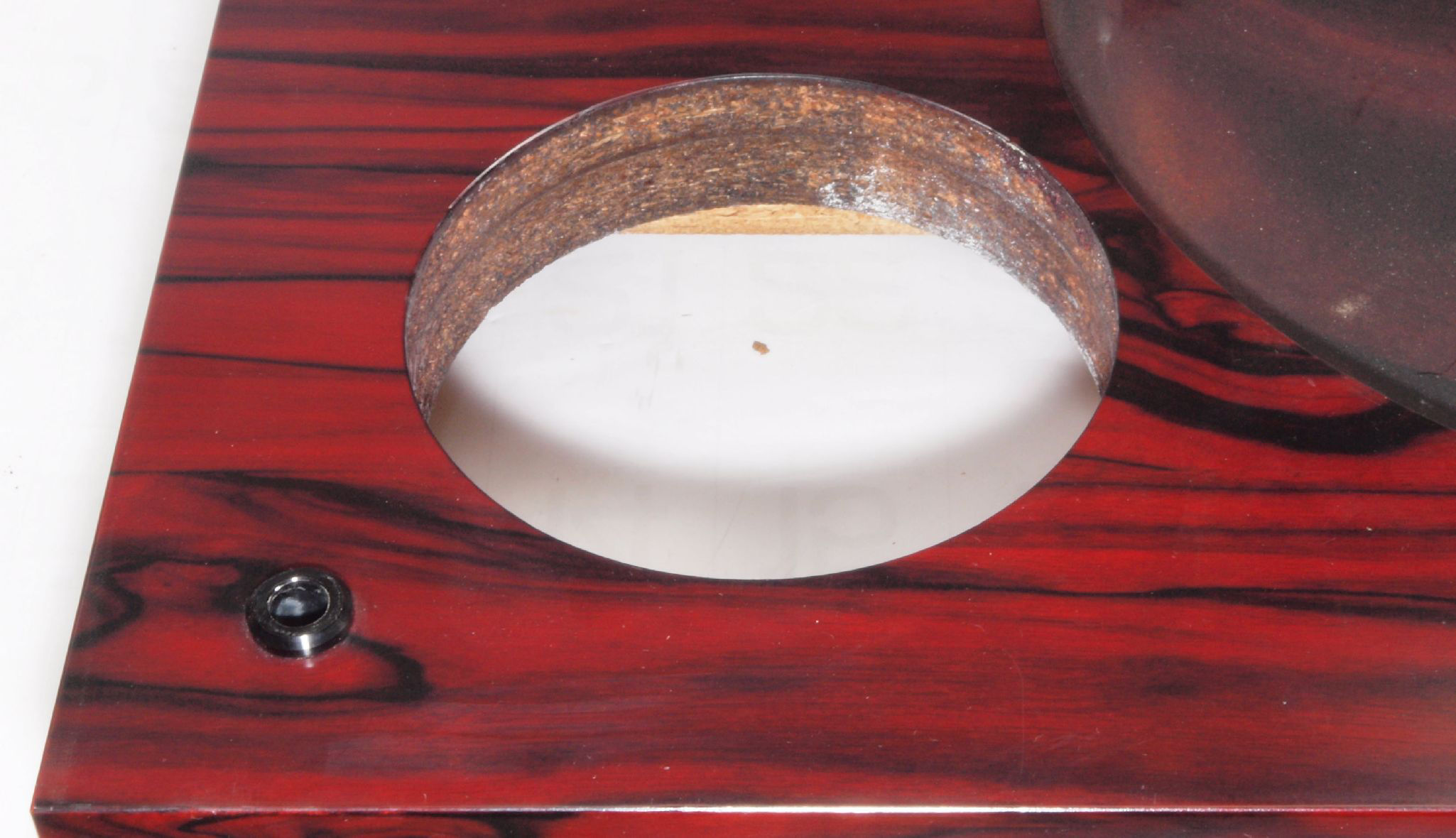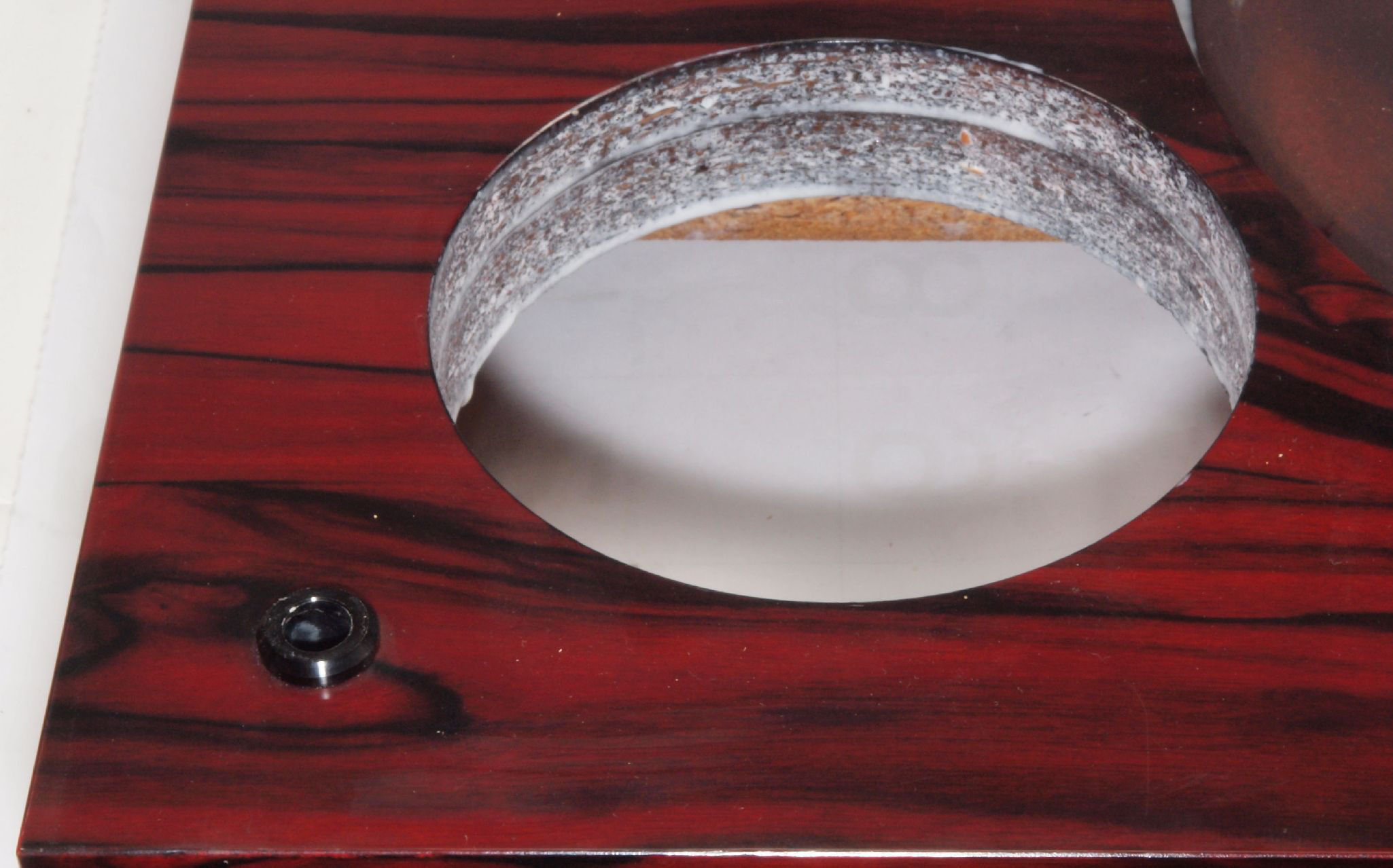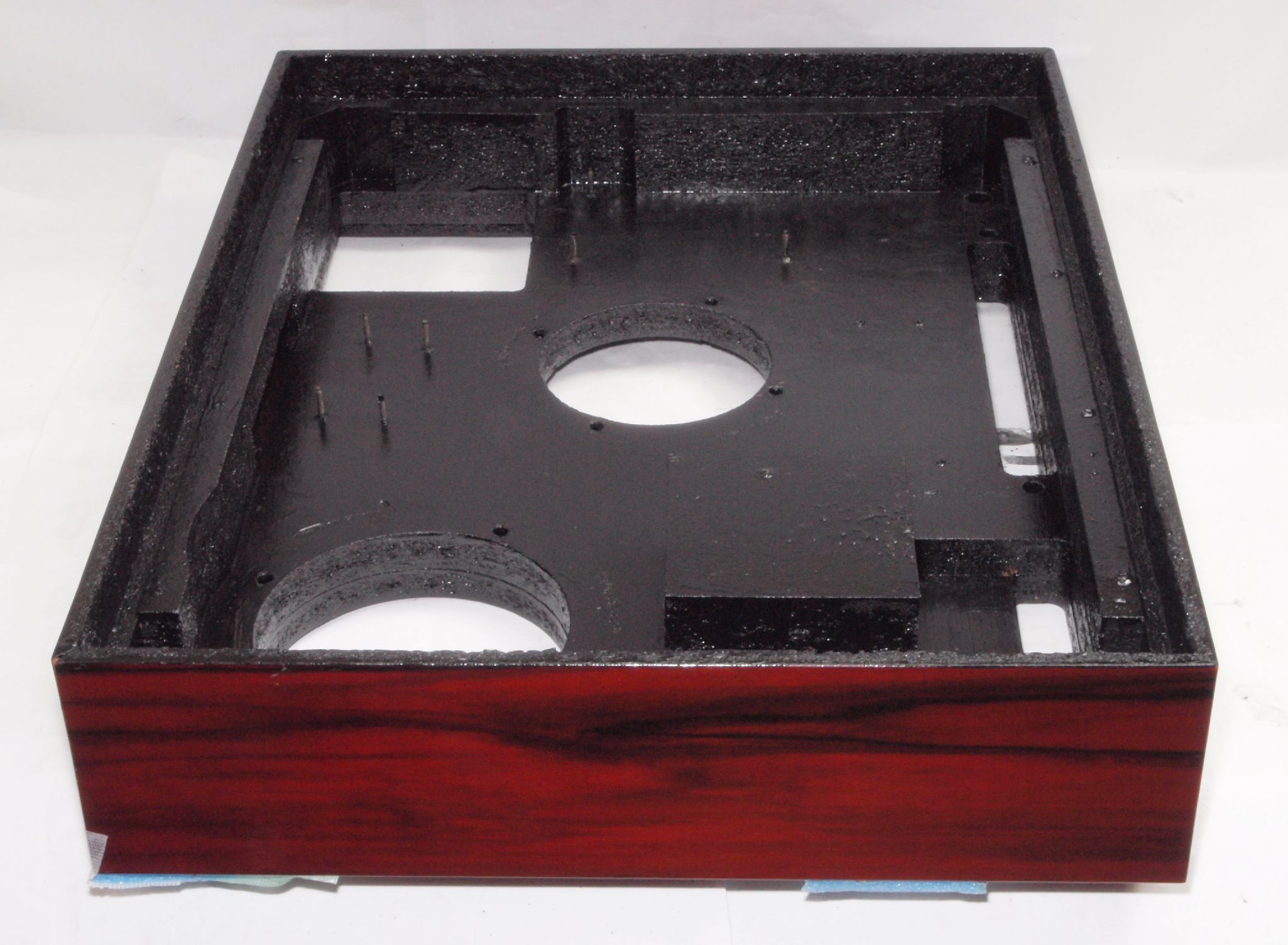 W1C. 修理後 タンテーブル取り付け穴。 キズを消す為と割れを防ぐのに、塗装する。