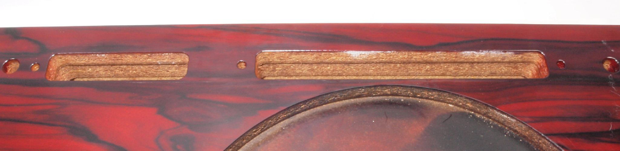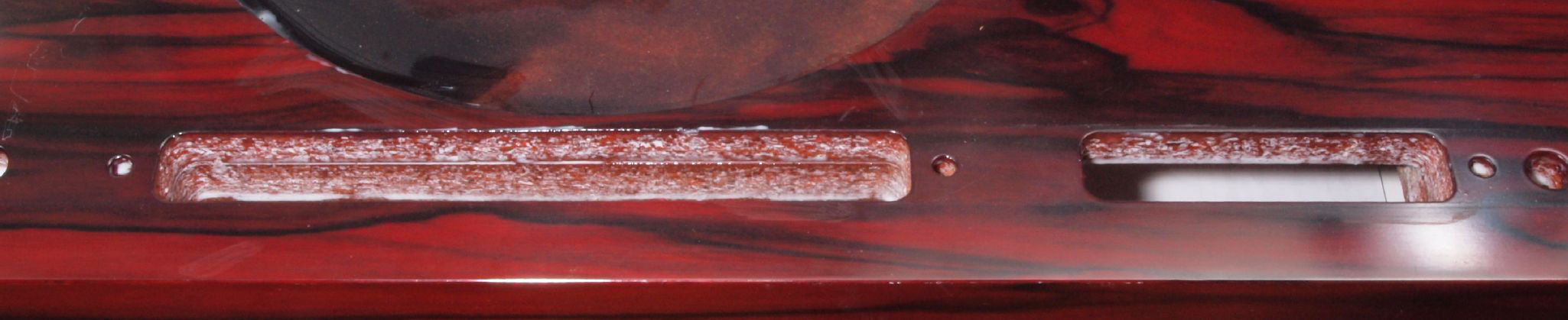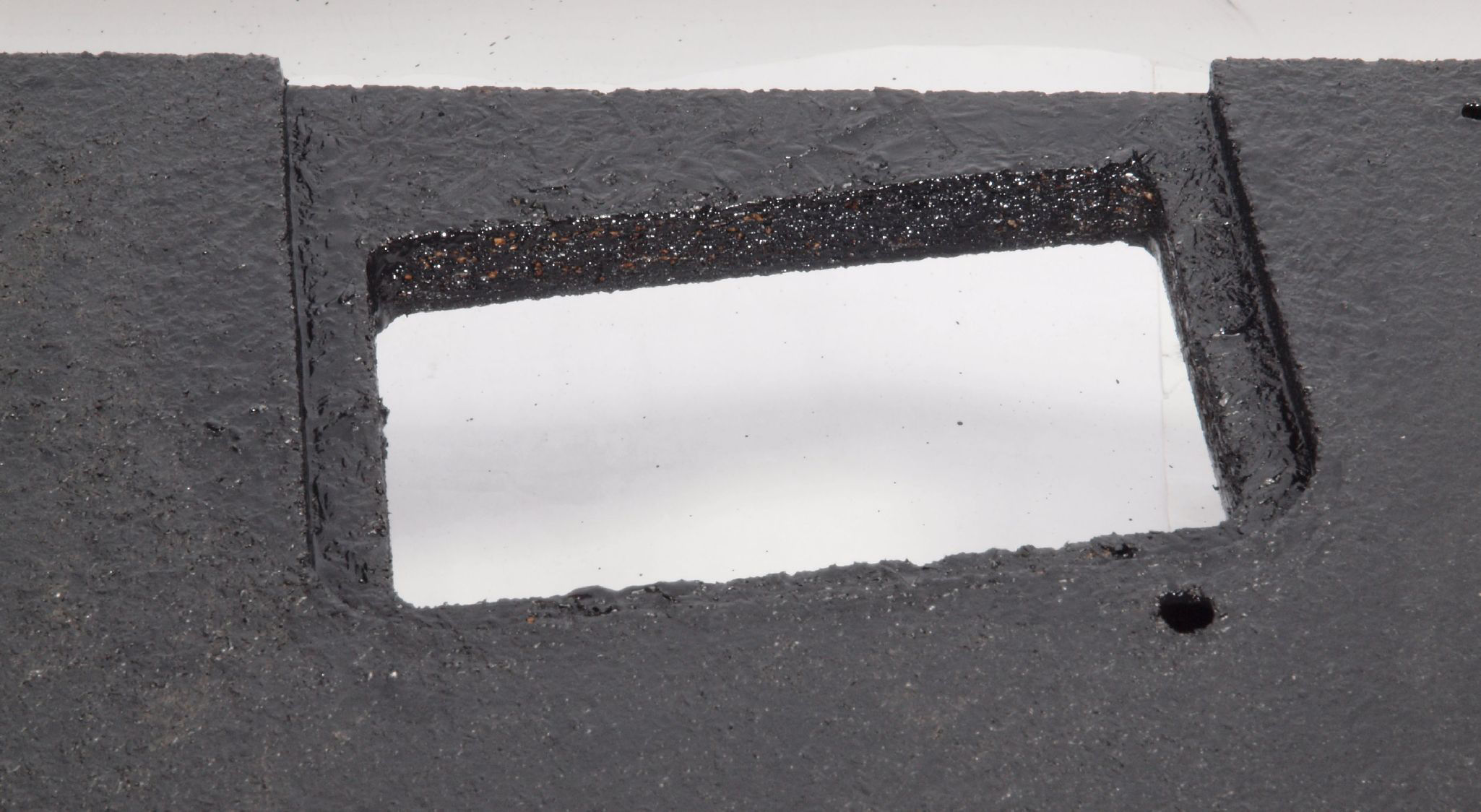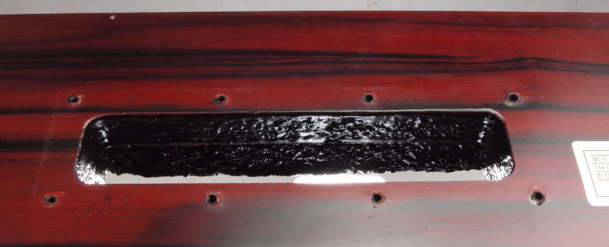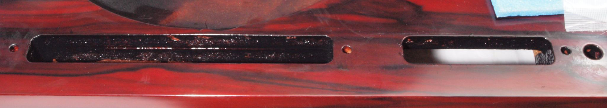 W1F. 修理後 操作部取り付け穴。 キズを消す為と割れを防ぐのに、塗装する。