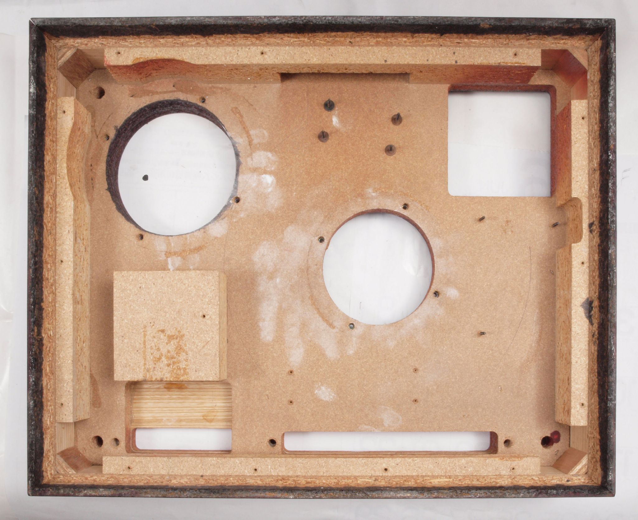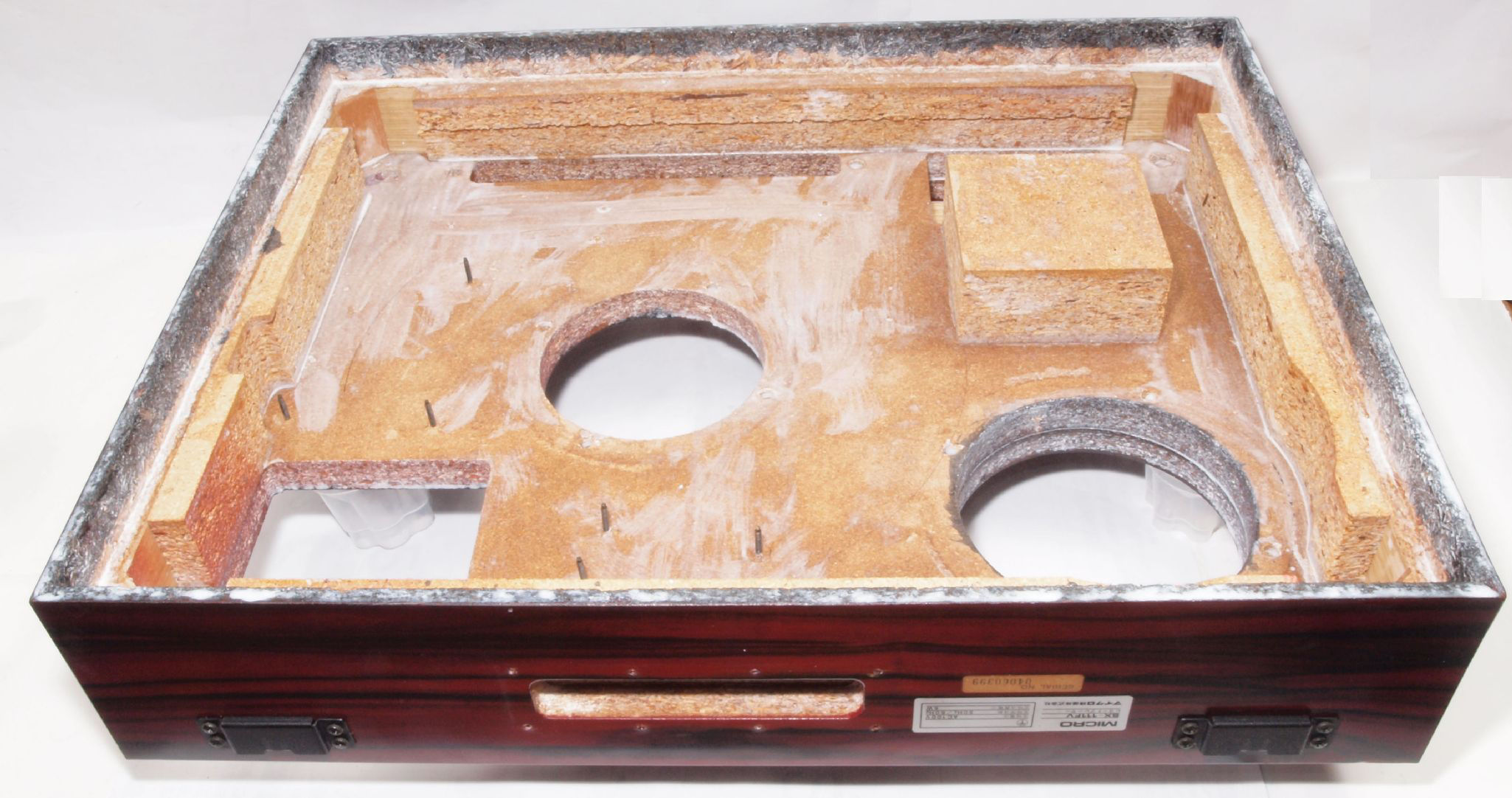 W72. 修理(塗装)後 底板裏側、 前右から。 圧縮材に、水性木工ボンドを塗布。