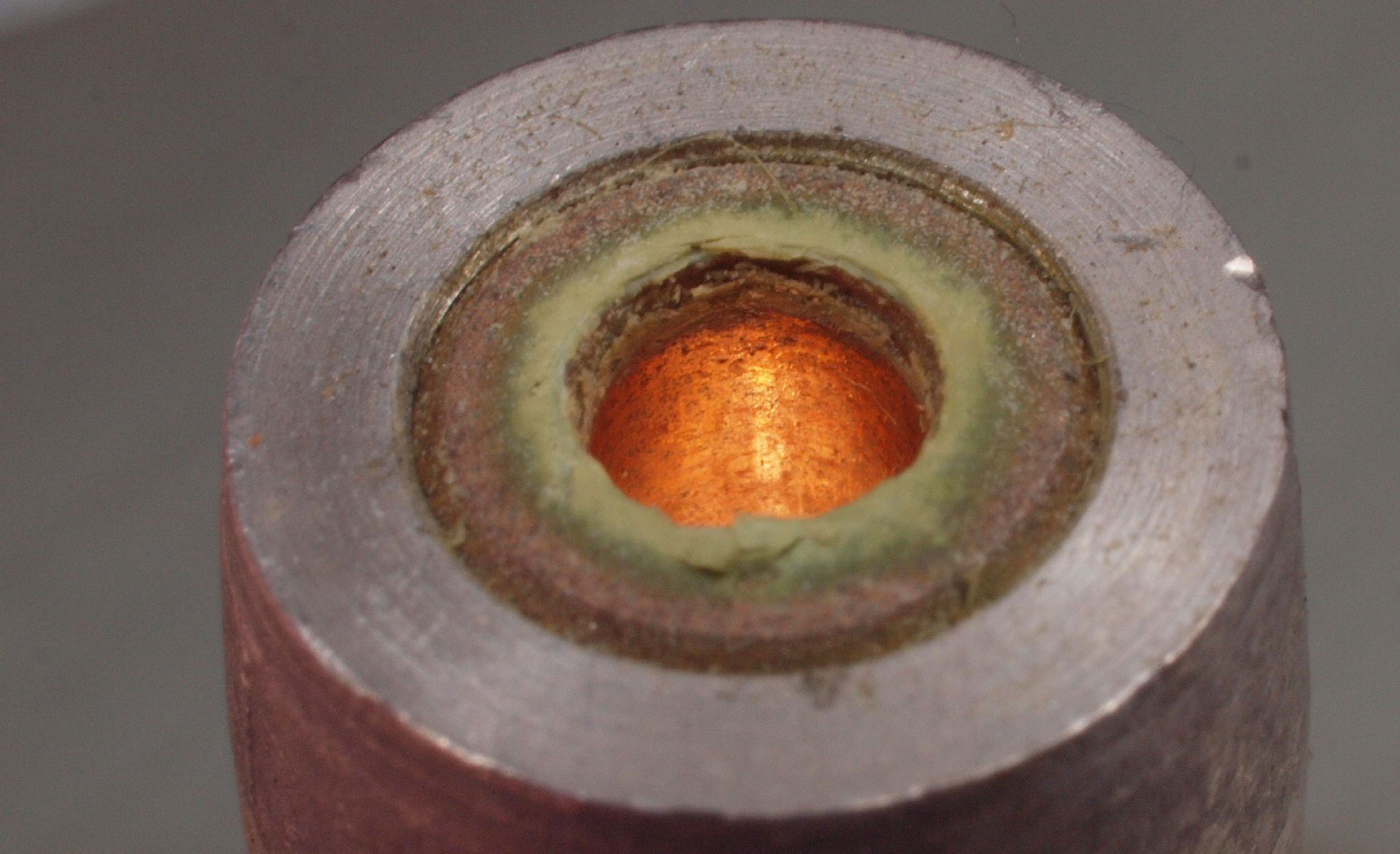 C42. 修理中 モーター上側軸受け。 オイルが変成して軸出口に固着している。