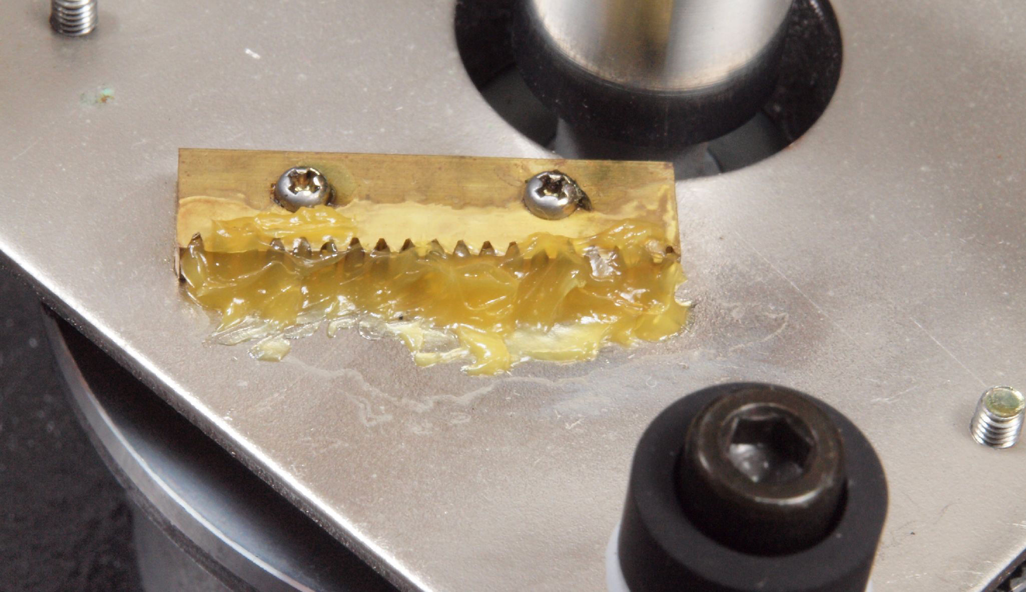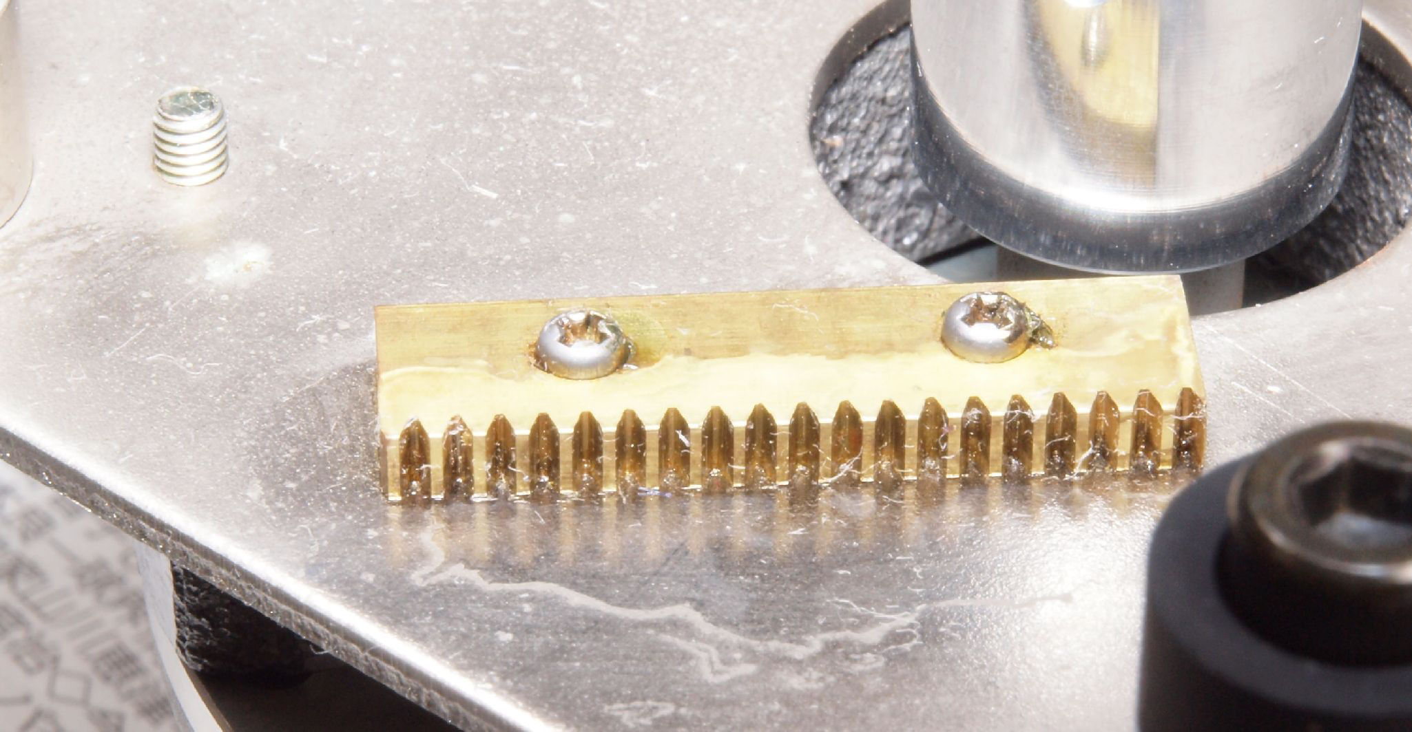 C83. 修理後 モーター移動用ラック歯車。新しいグリスを塗布。