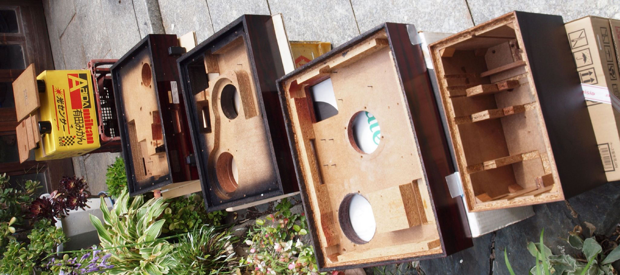 WB2. 修理(乾燥)中。 ベランダで反りに注意し乾燥する。左からSX−777Air.2台目、 BL−111.14台目