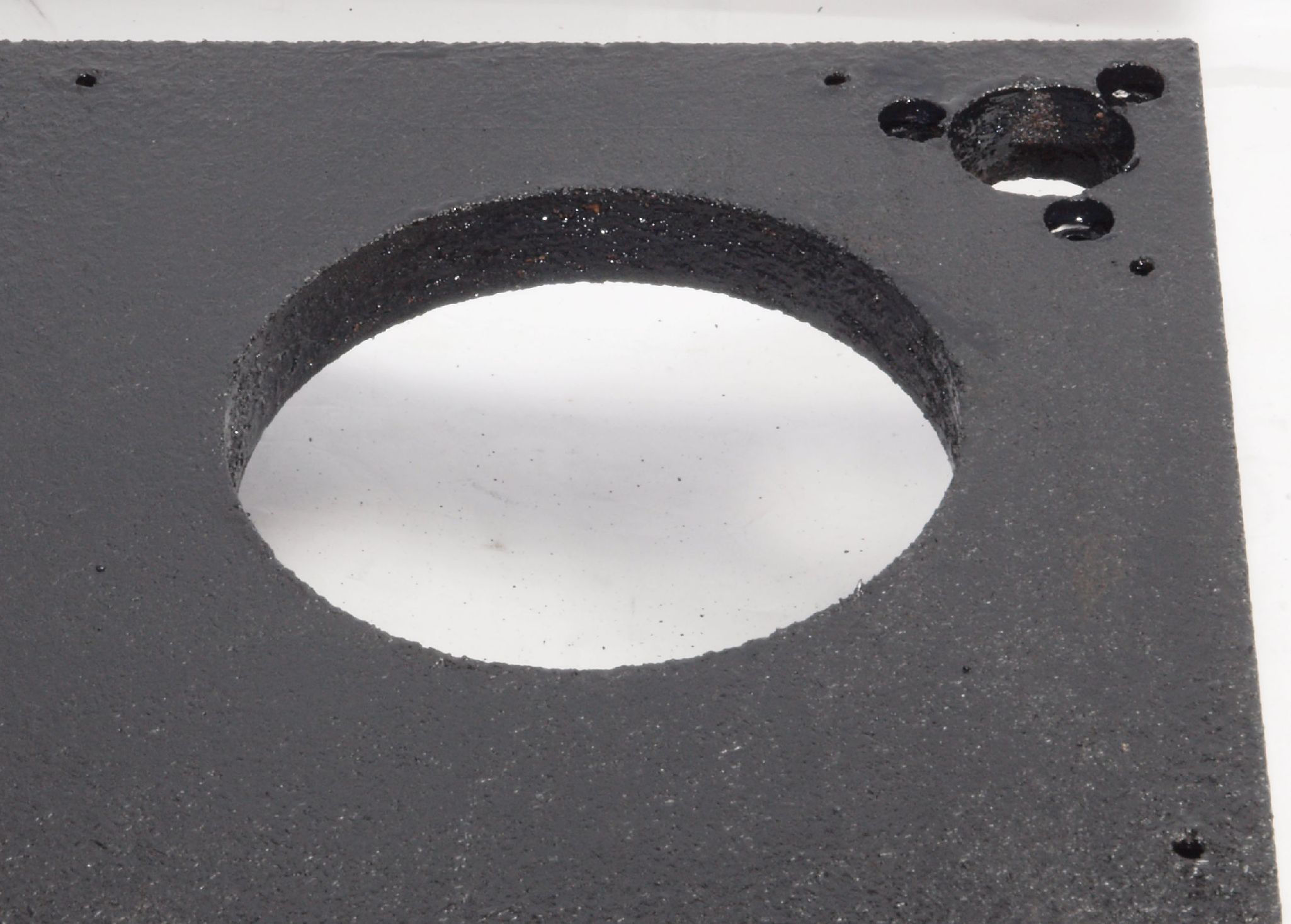 W16. 修理後 アーム取り付け穴、反対側。 キズを消す為と割れを防ぐのに、塗装する