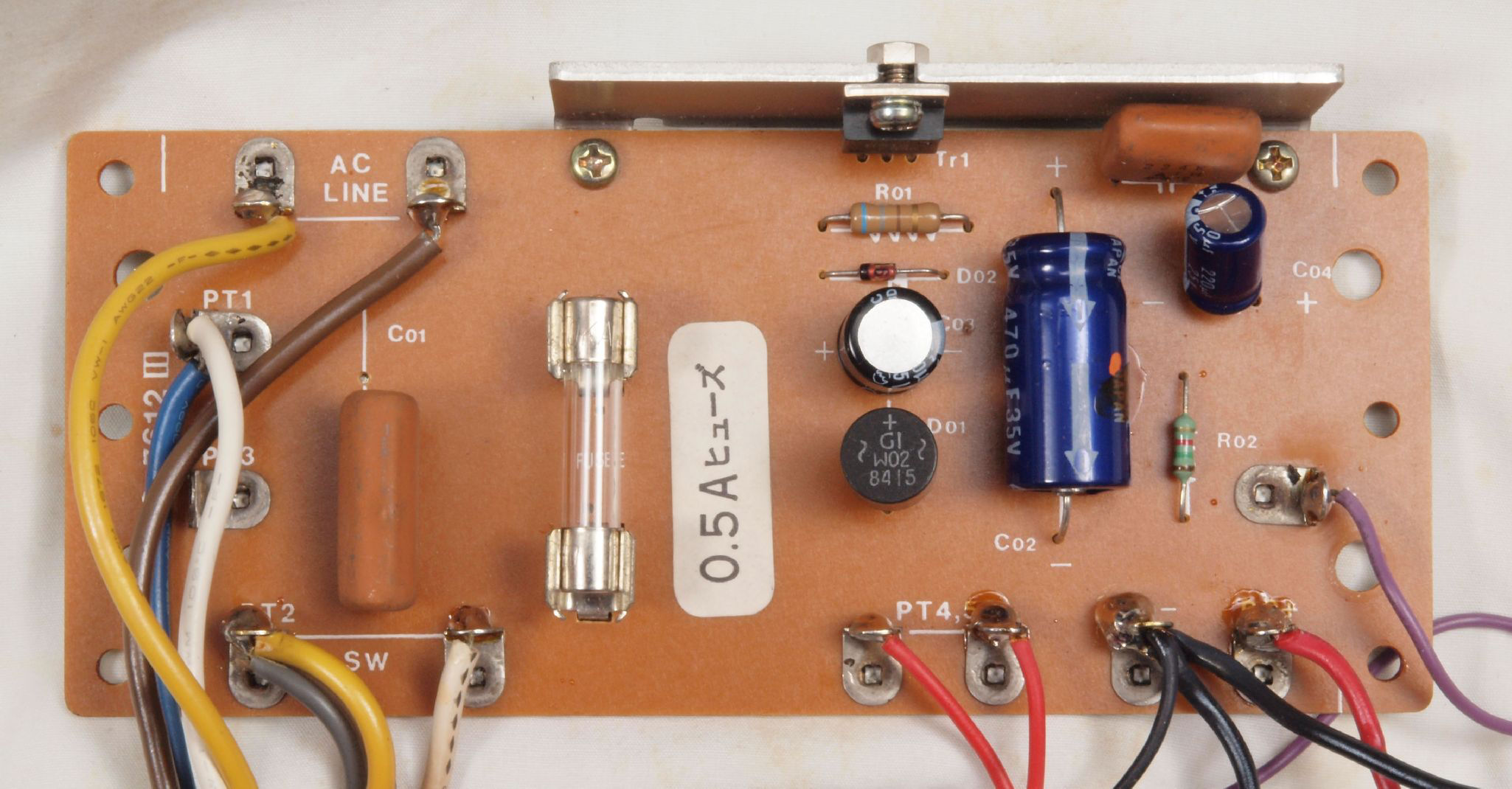 C22. 修理中 電源・ヒューズ基板。 トルエン溶媒の接着剤。