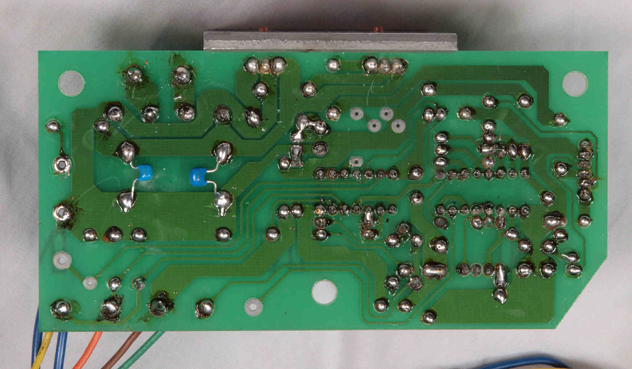 | D15. 完成モーター部コントロール基板裏。余分なフラックスを落として、コート液を塗る。 | ||||||||||||||||||||||||||||||||||||||