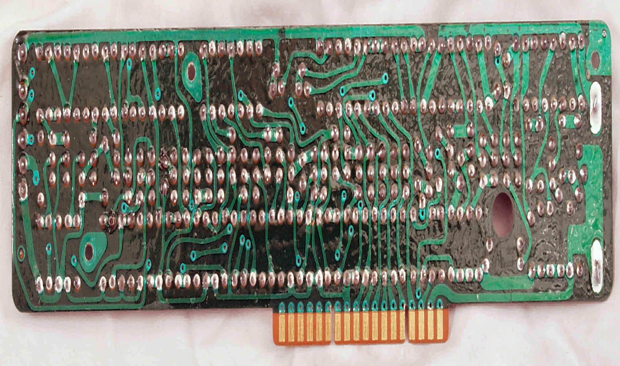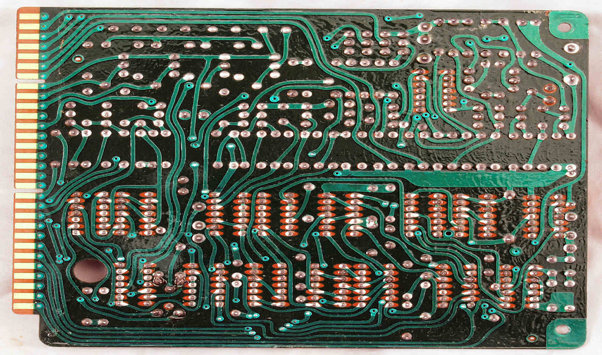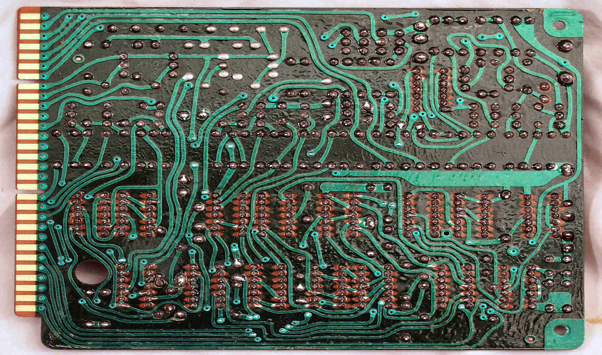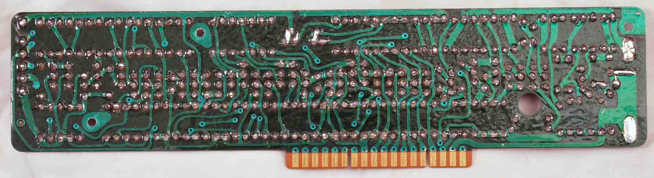 C−7E. 修理(半田補正)後 メイン基板裏。全ハンダをやり直す。