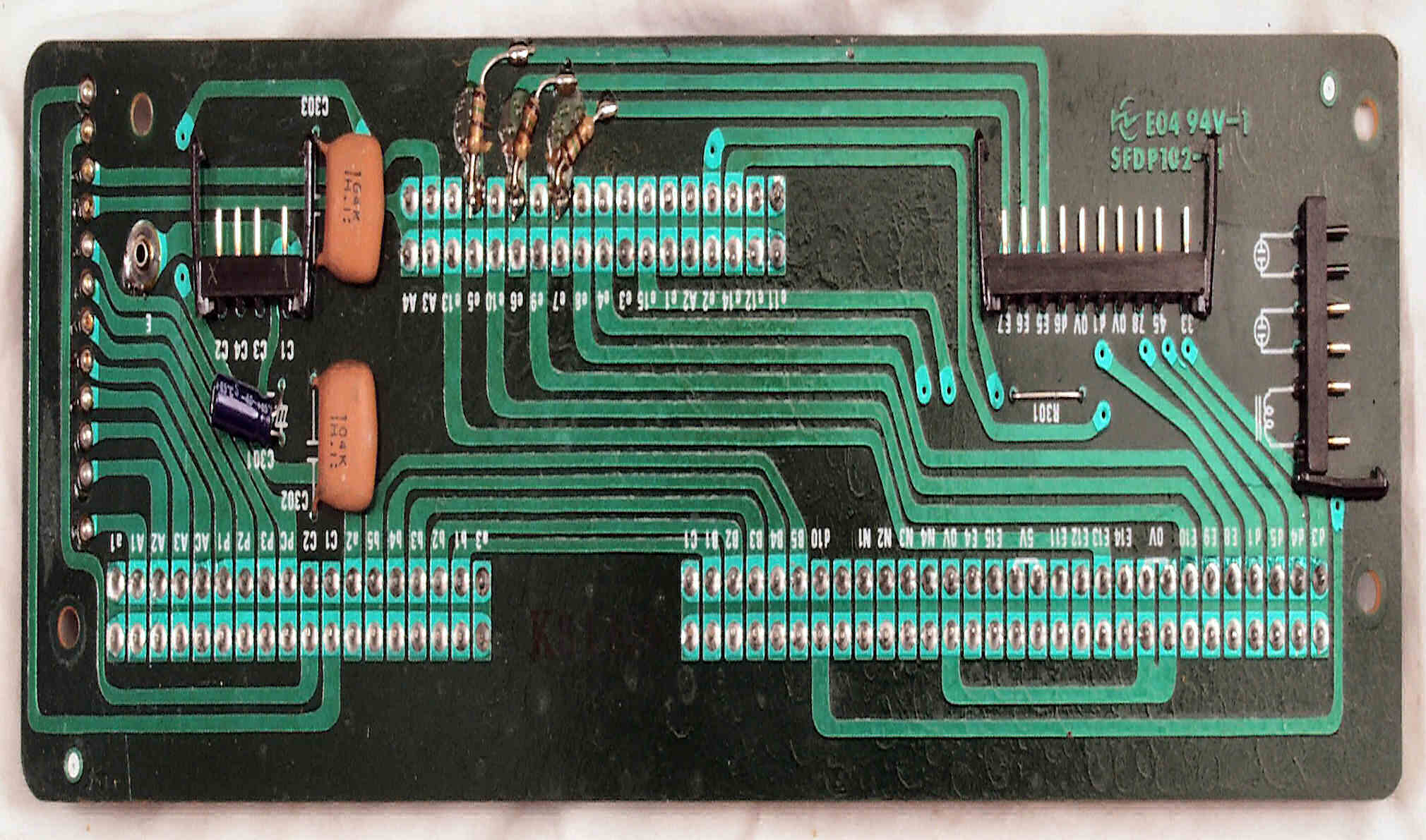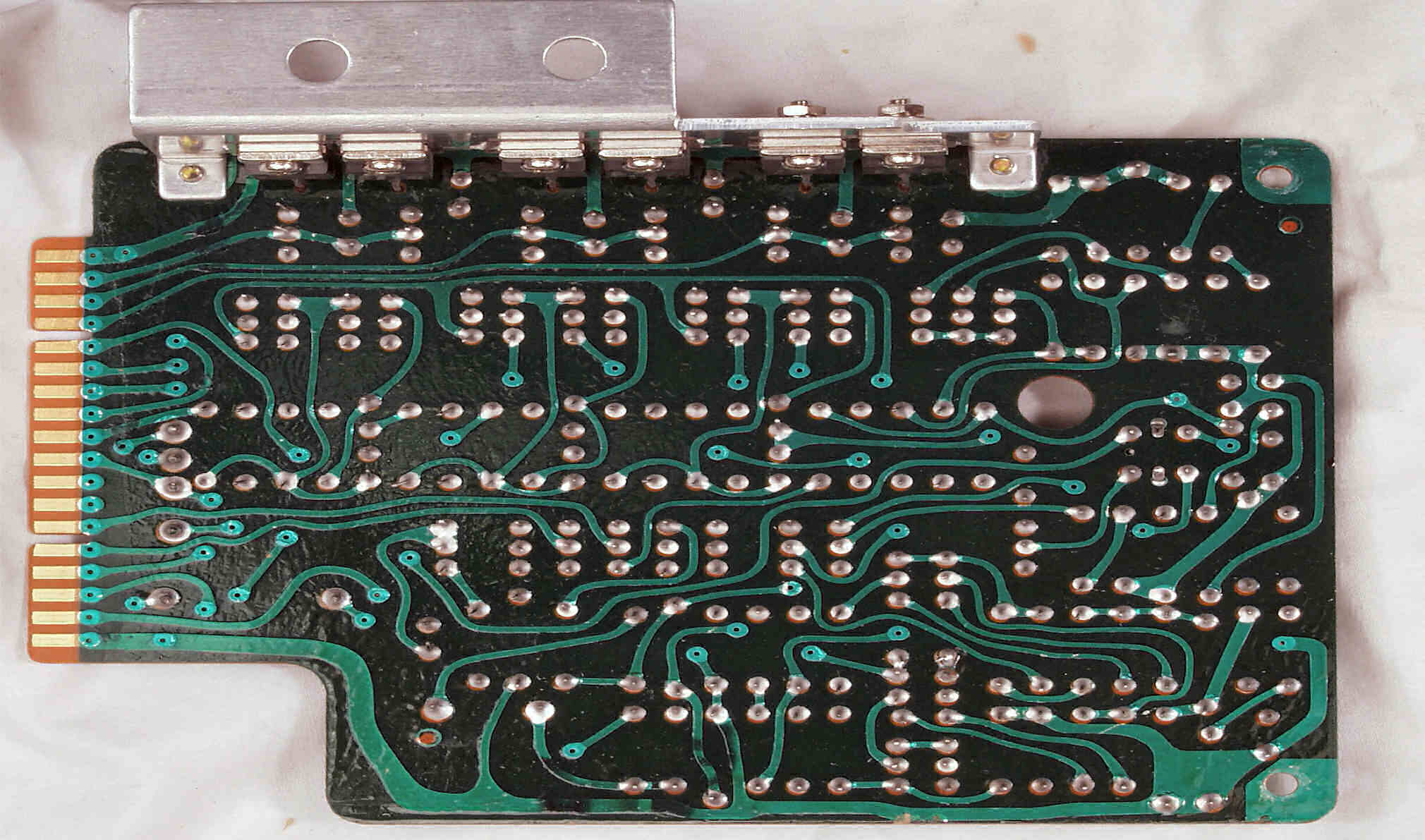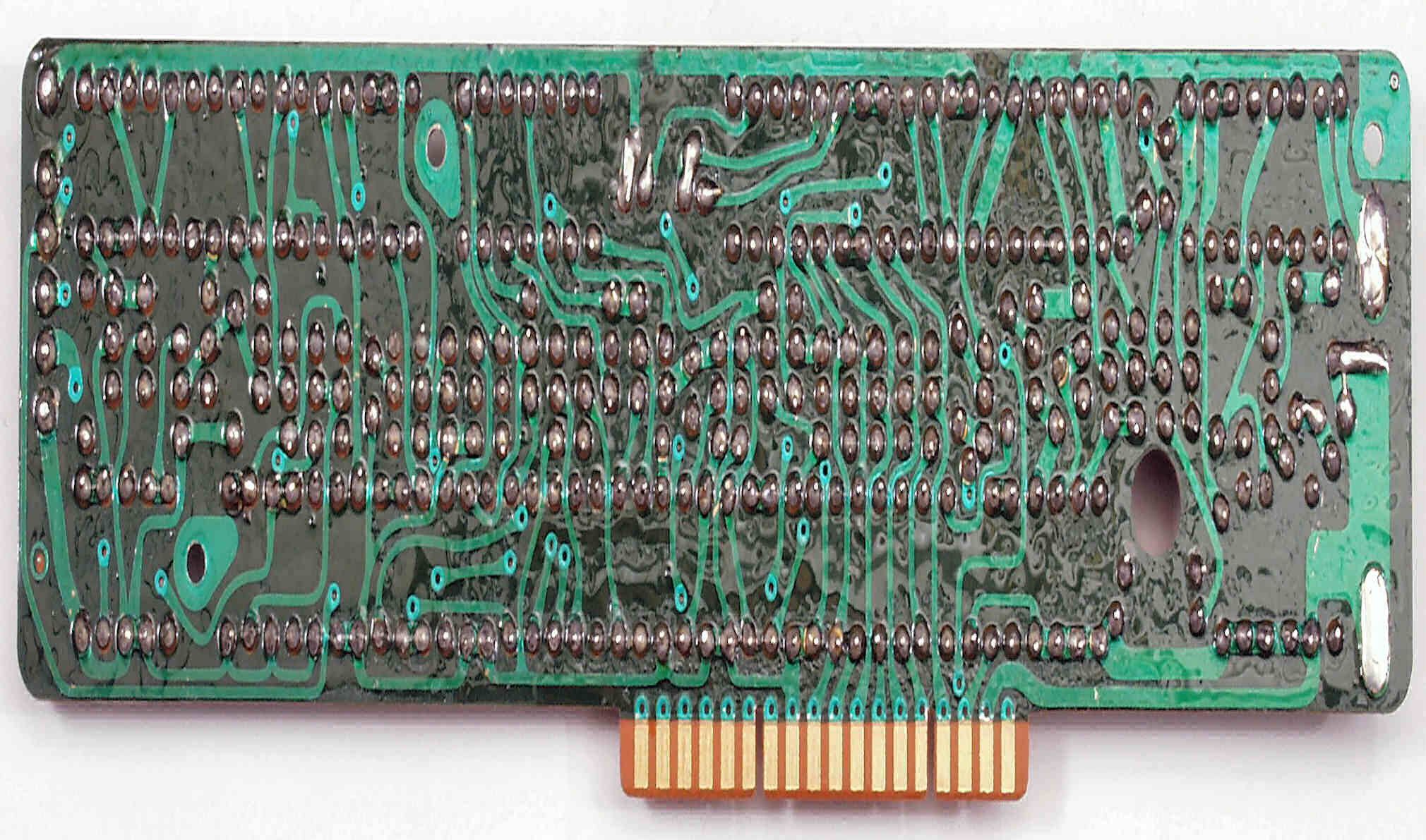 C−7E. 修理(半田補正)後 メイン基板裏。全ハンダをやり直す。