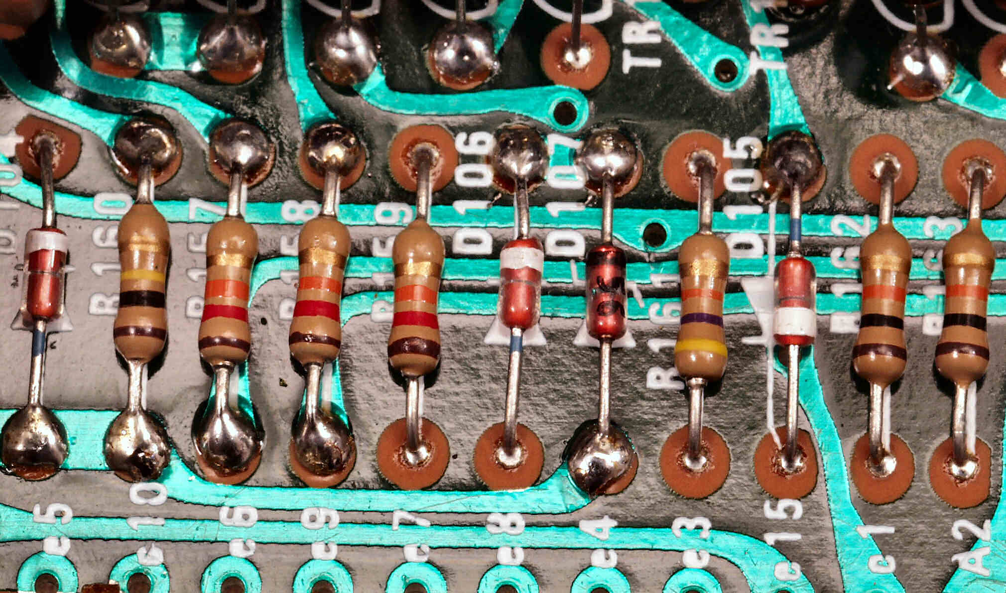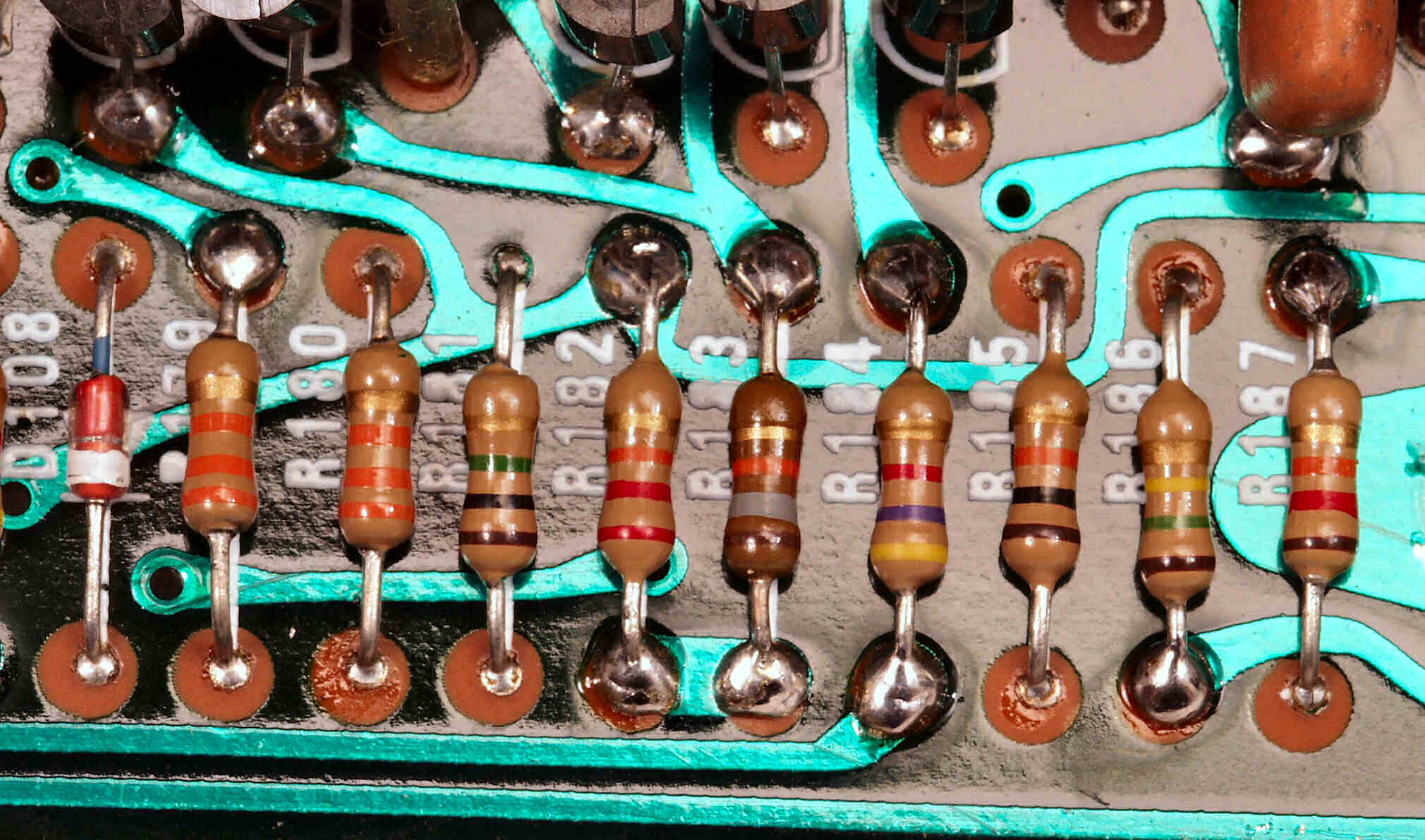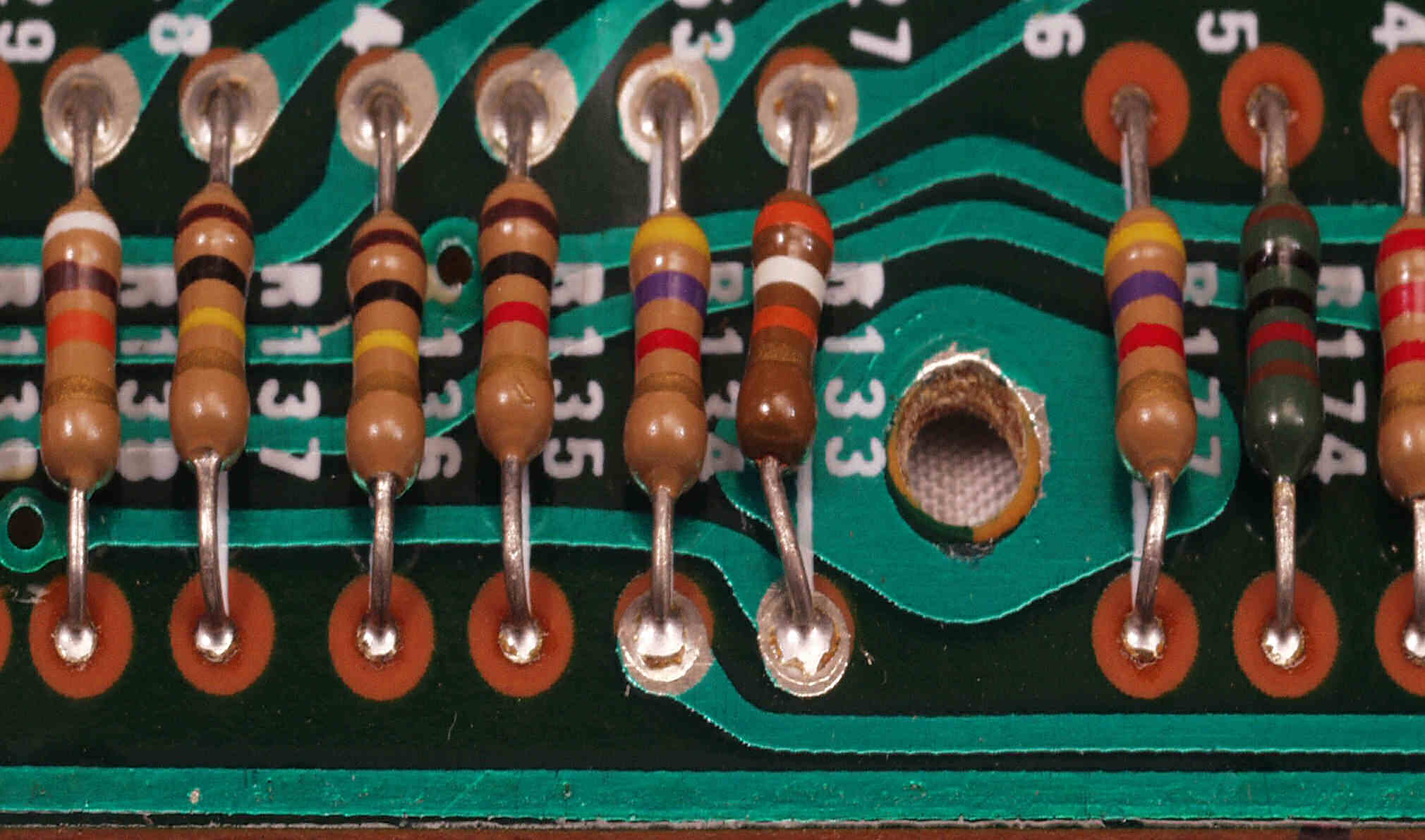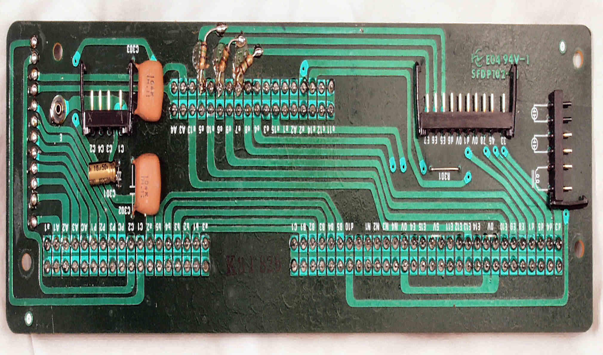 C−7E. 修理(半田補正)後 メイン基板裏。全ハンダをやり直す。