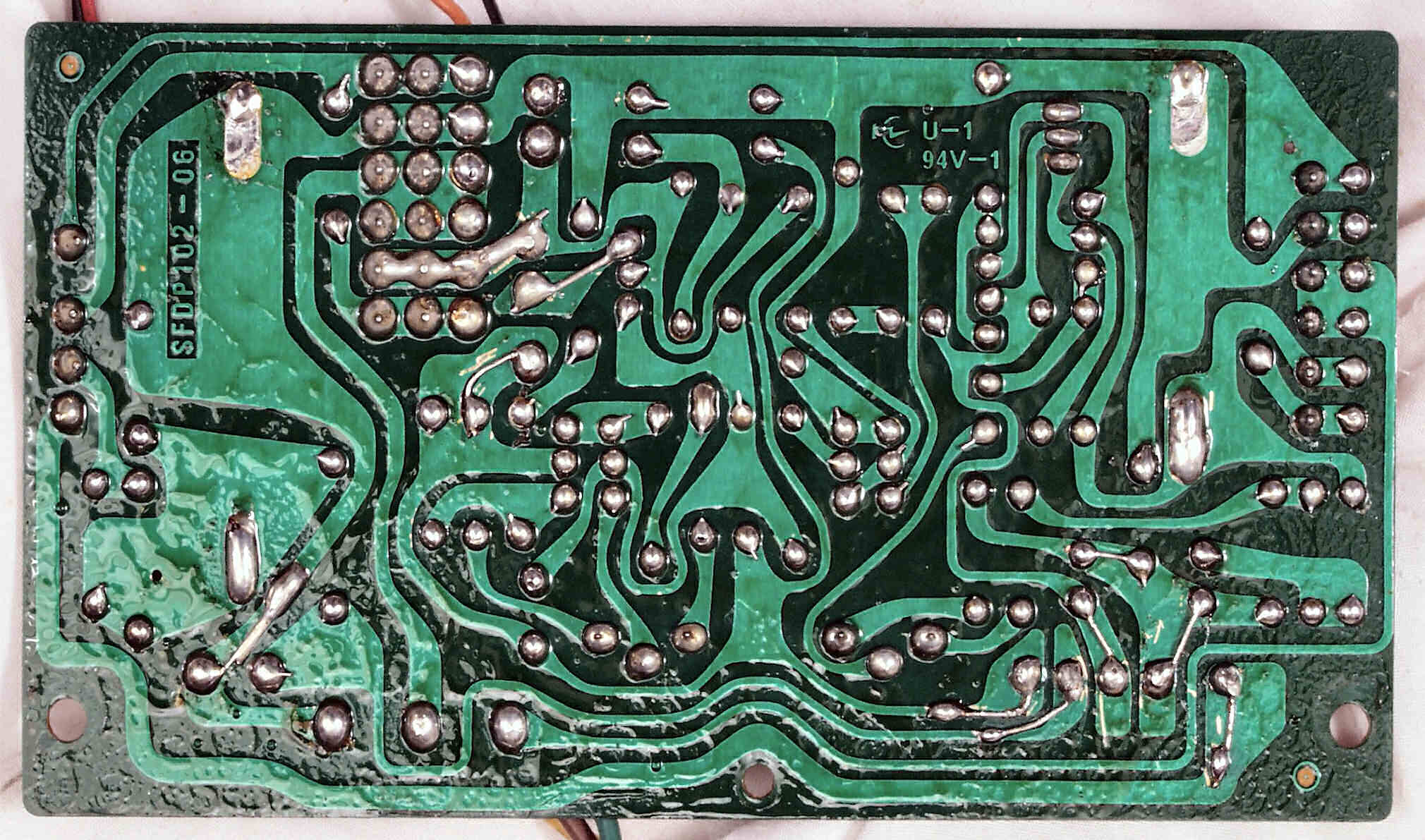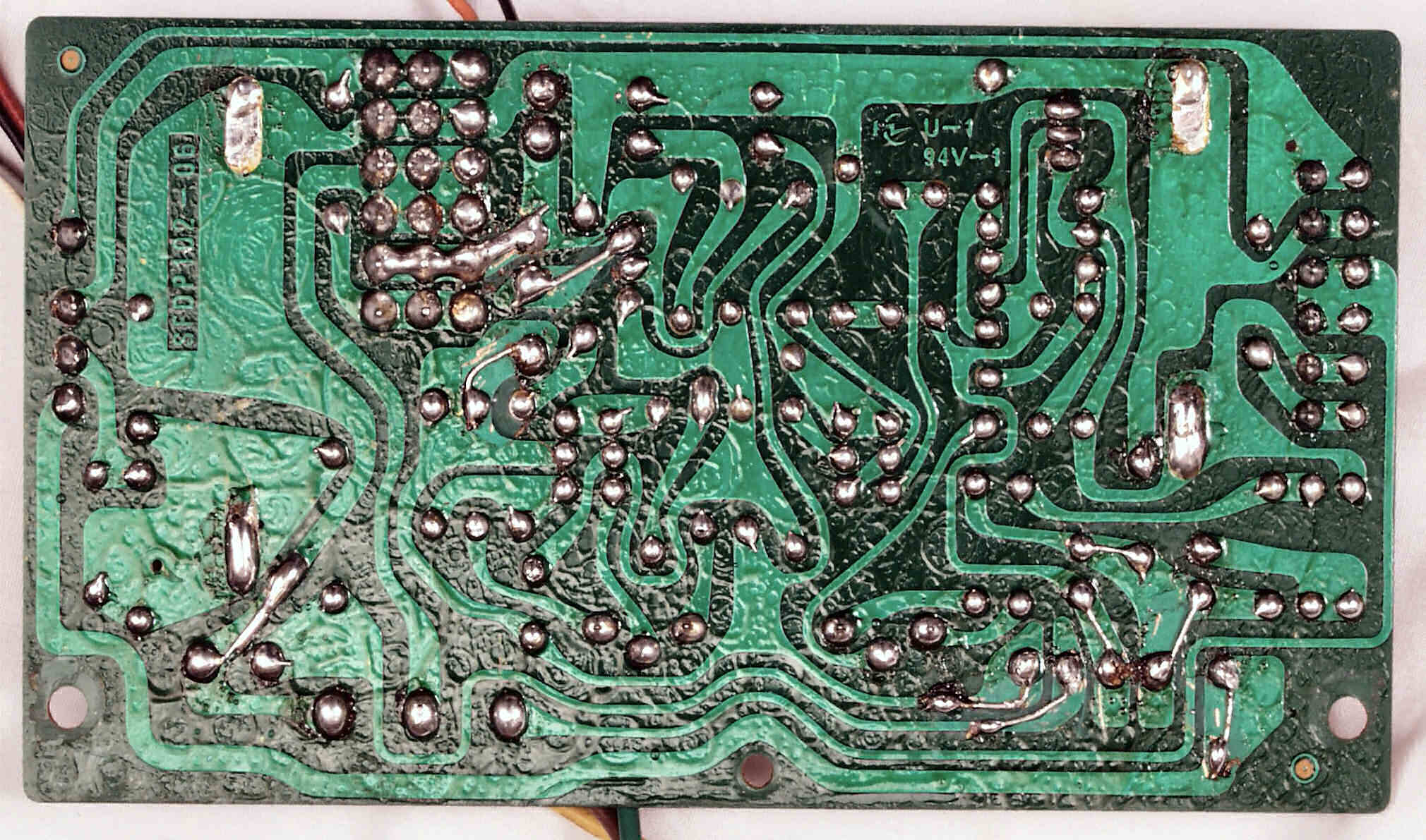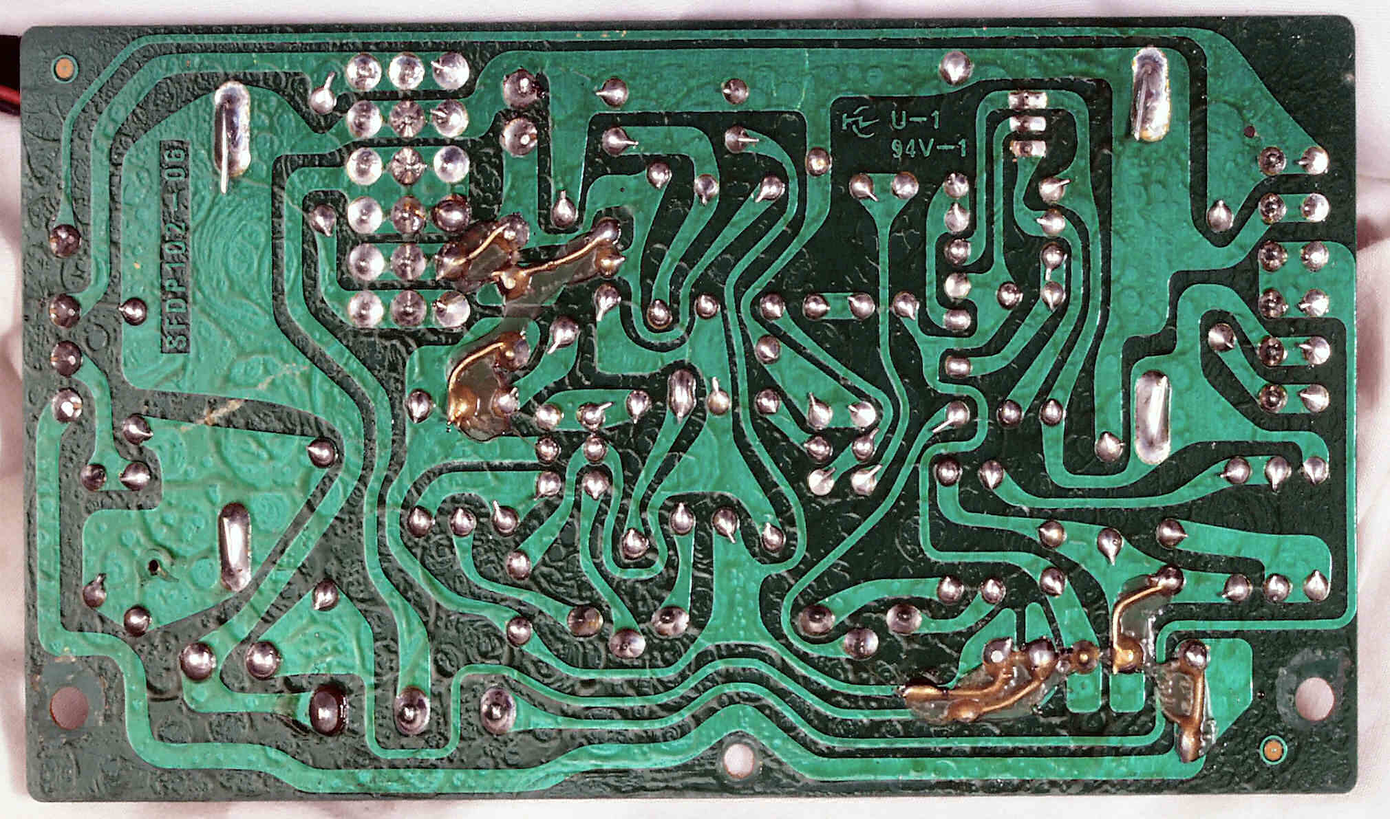 C−5E. 修理(半田補正)後 駆動基板裏。全ハンダをやり直す。