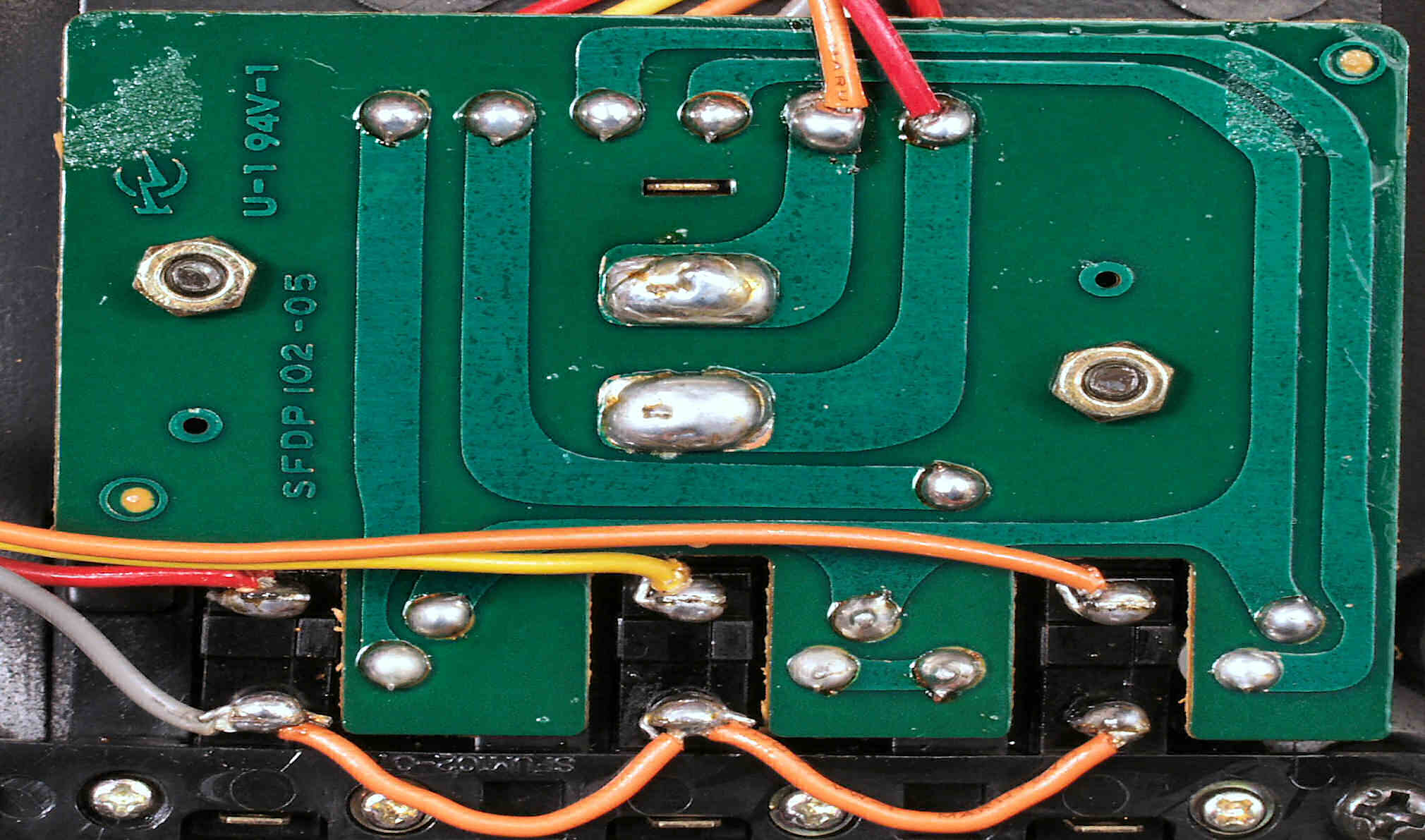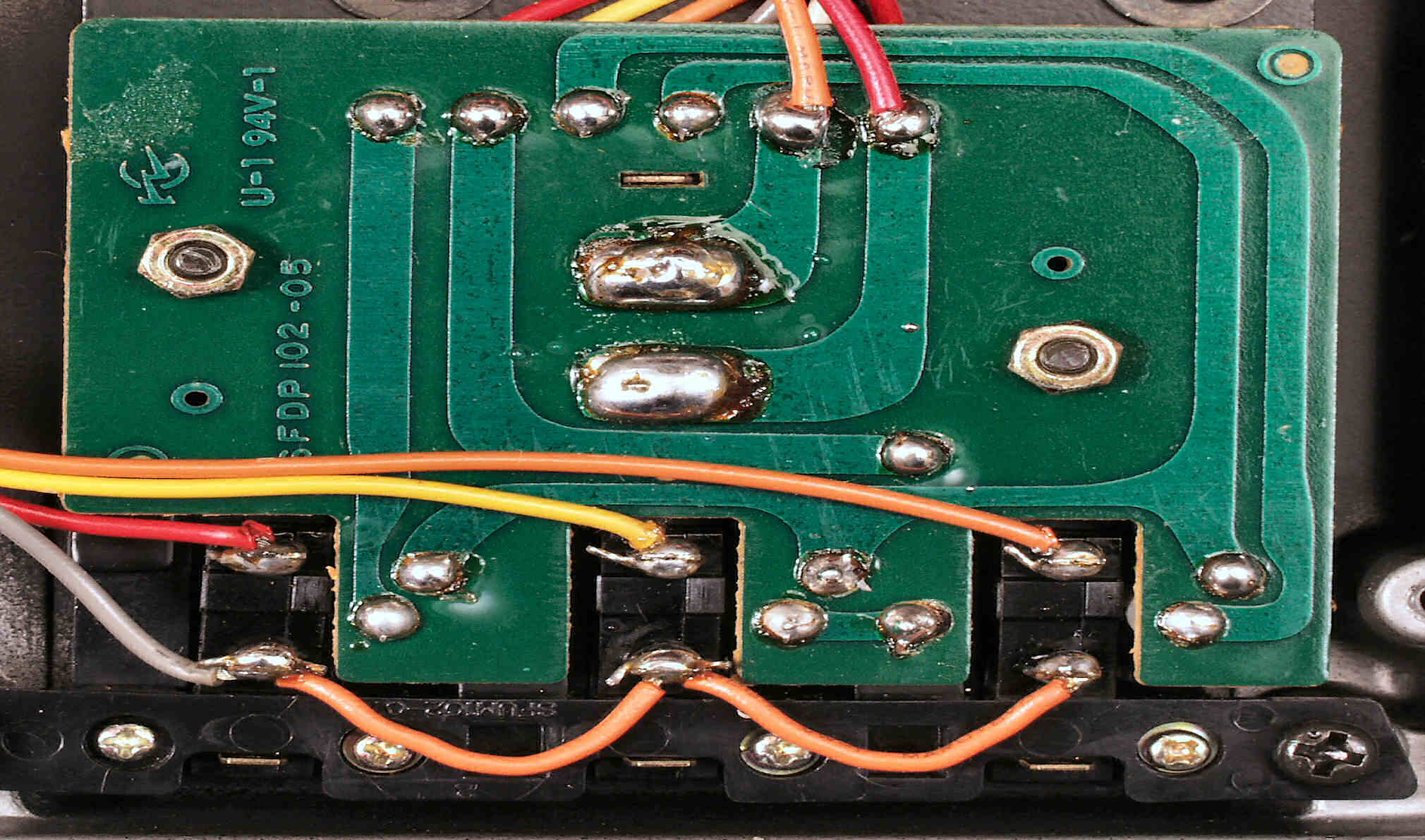 C−2C. 修理(半田補正)後 電源ヒューズ基板裏。全ハンダをやり直す。