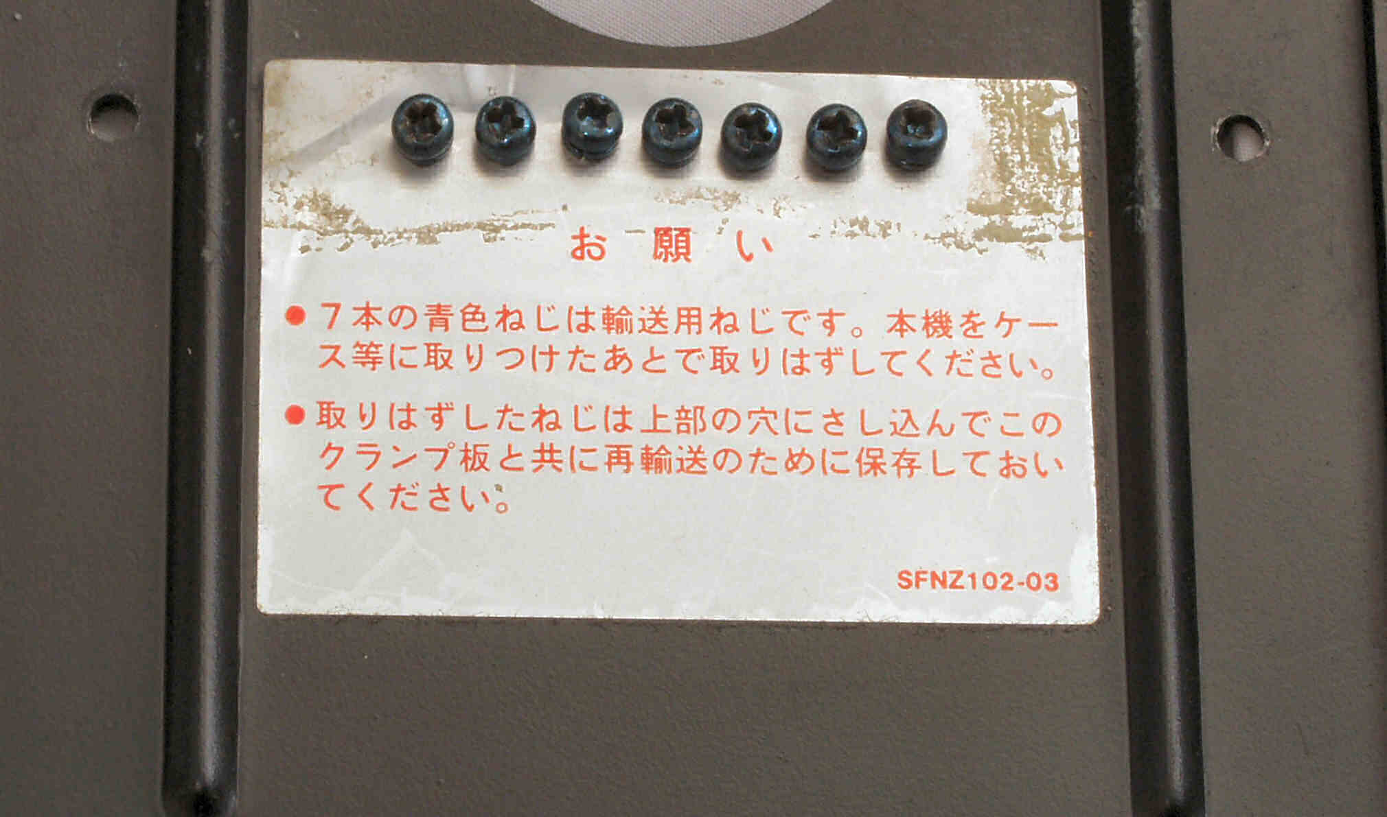 A−3. 点検中 モーター固定板に設けられた、ネジ置き場。 これで紛失防止ができる。