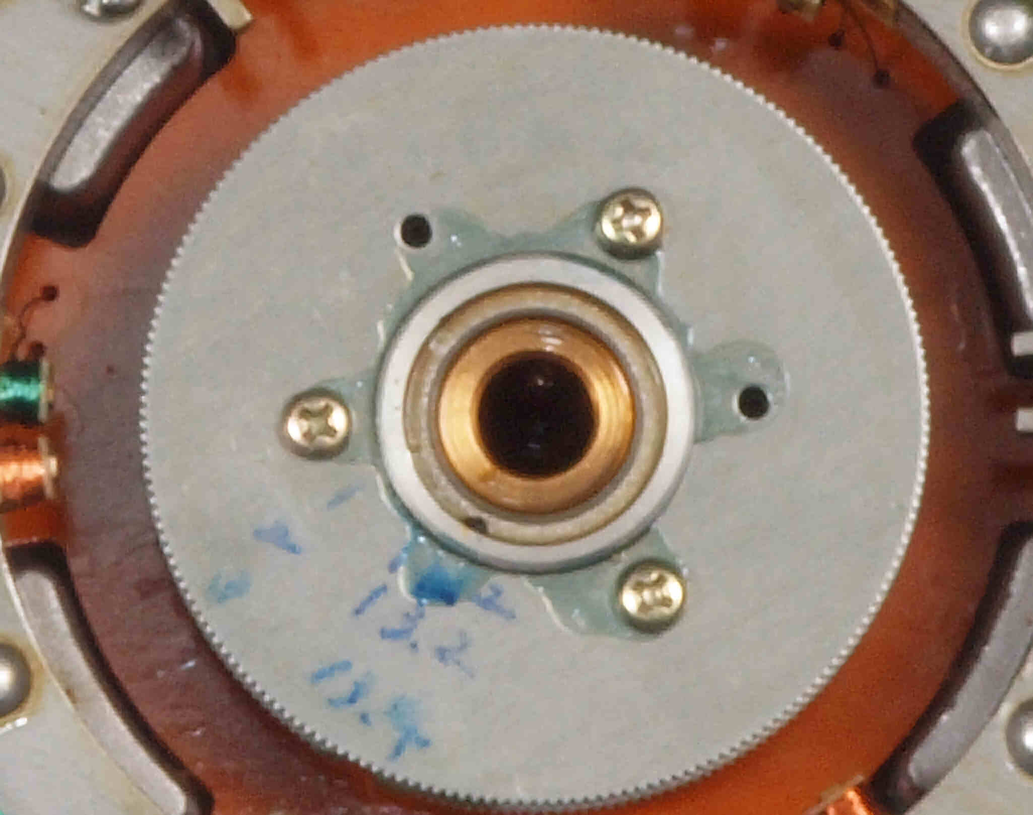 | M44. 修理後 モータ回転子裏、反対側。 今後の為、錆止めを軽く塗布する。 | ||||||||||||||||||||||||||||||||||||