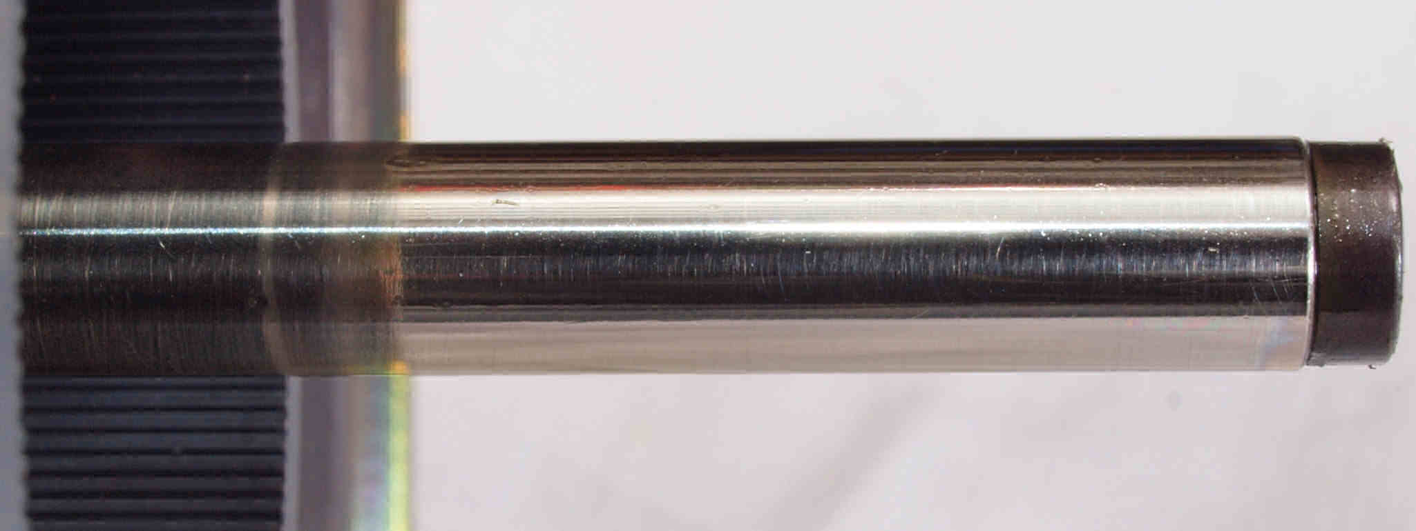 | M62. 修理中 回転子軸拡大して見る、 すこし擦れ跡がある。 | ||||||||||||||||||||||||||||||||||||