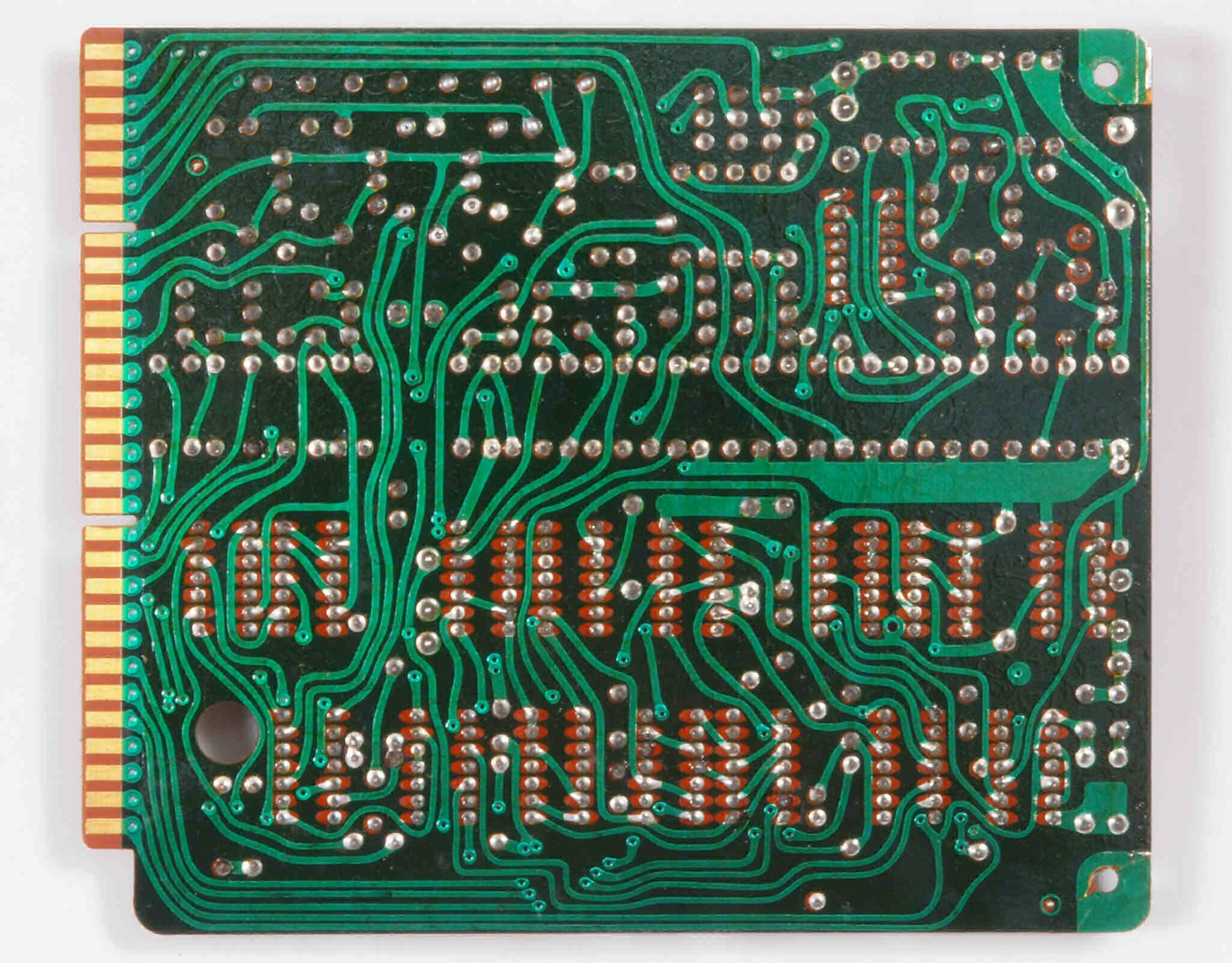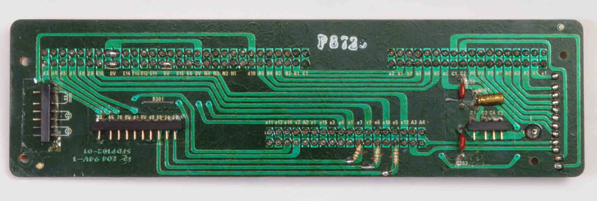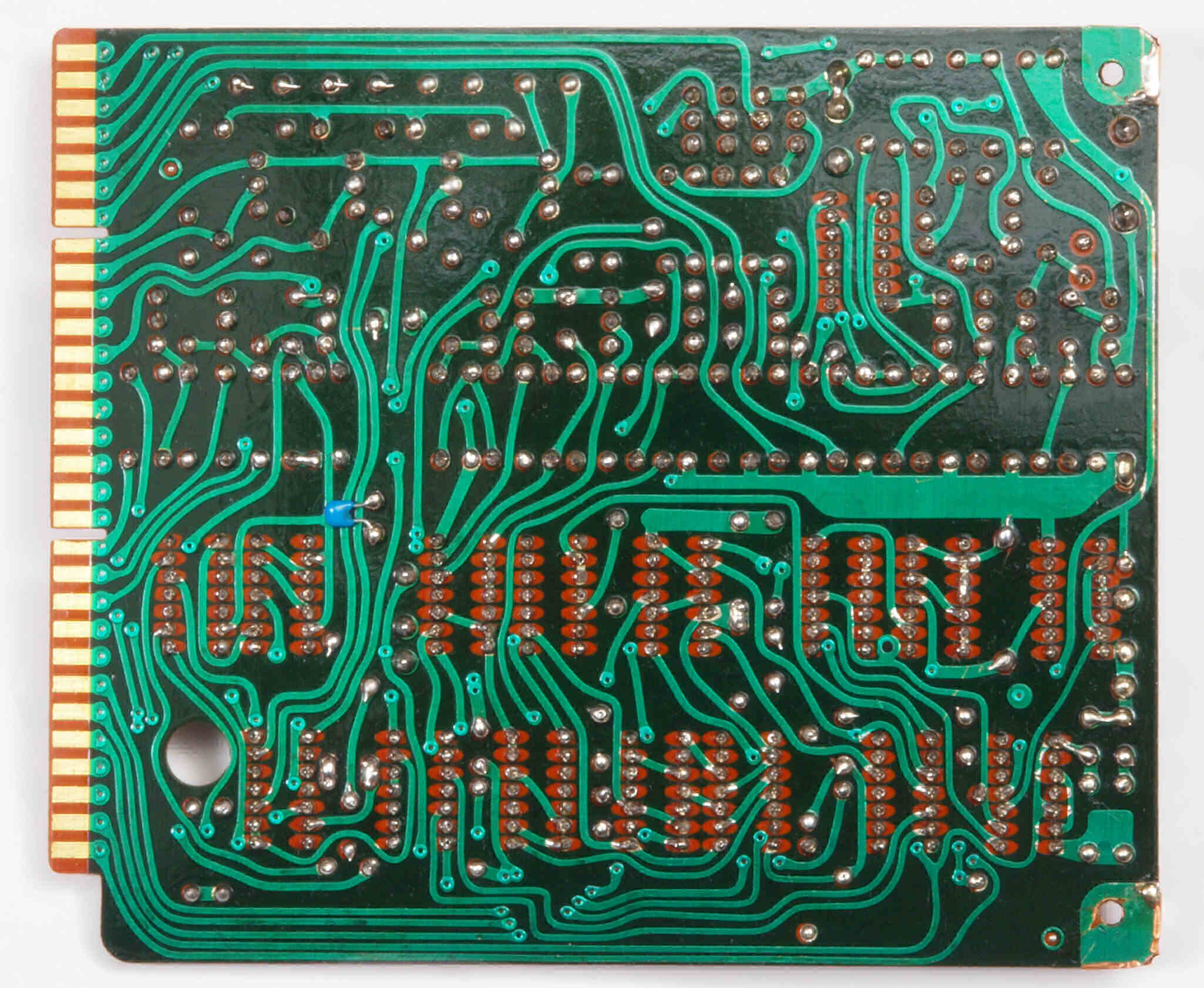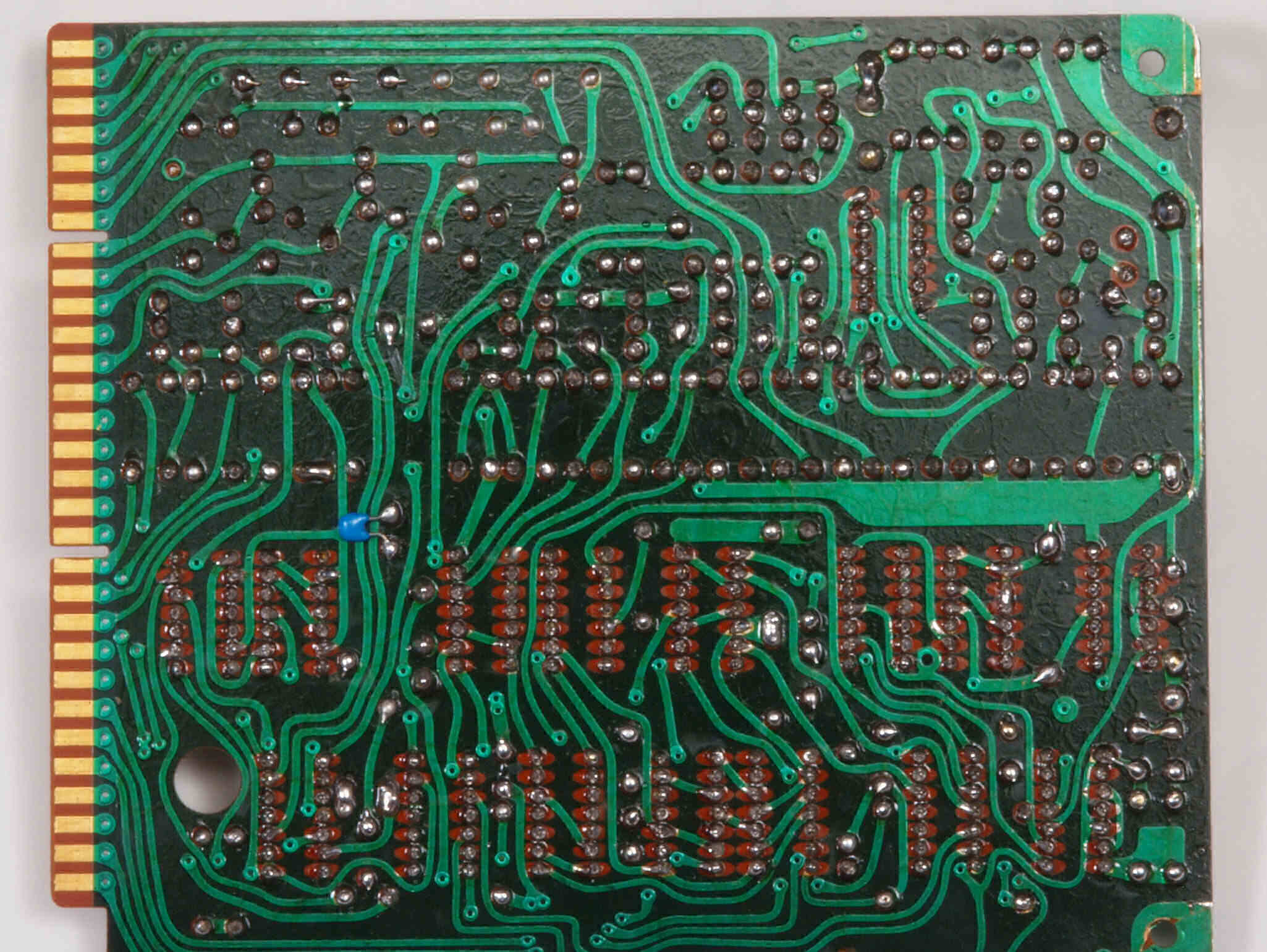 | C732. 完成駆動基板裏。余分なフラックスを落として、コート液を塗る。スルホール半田1。 | ||||||||||||||||||||||||||||||||||||