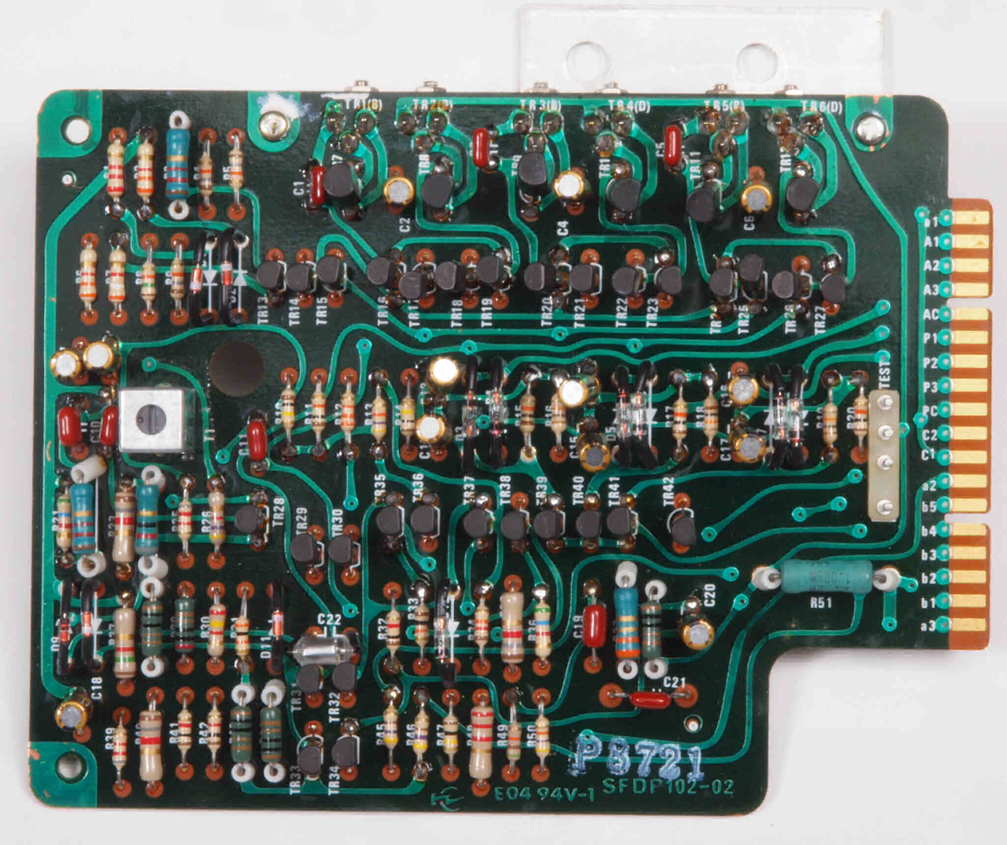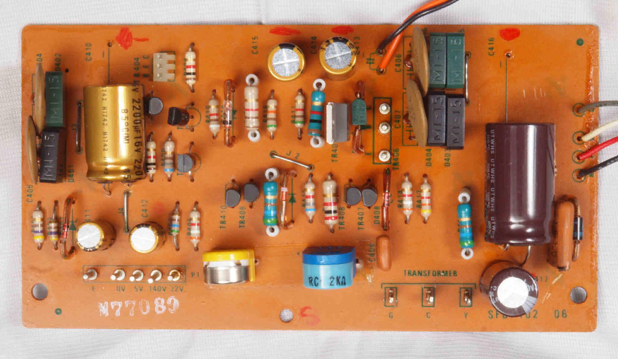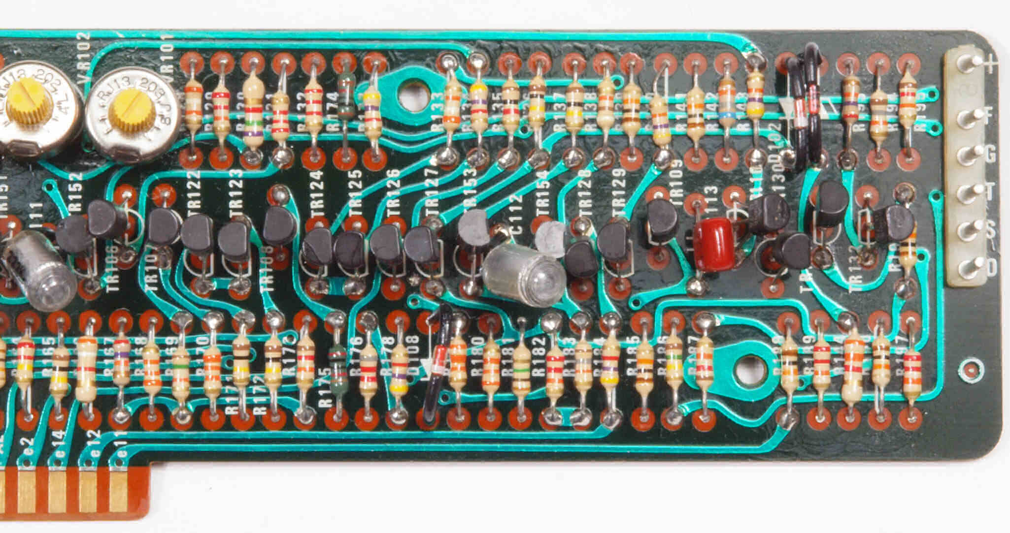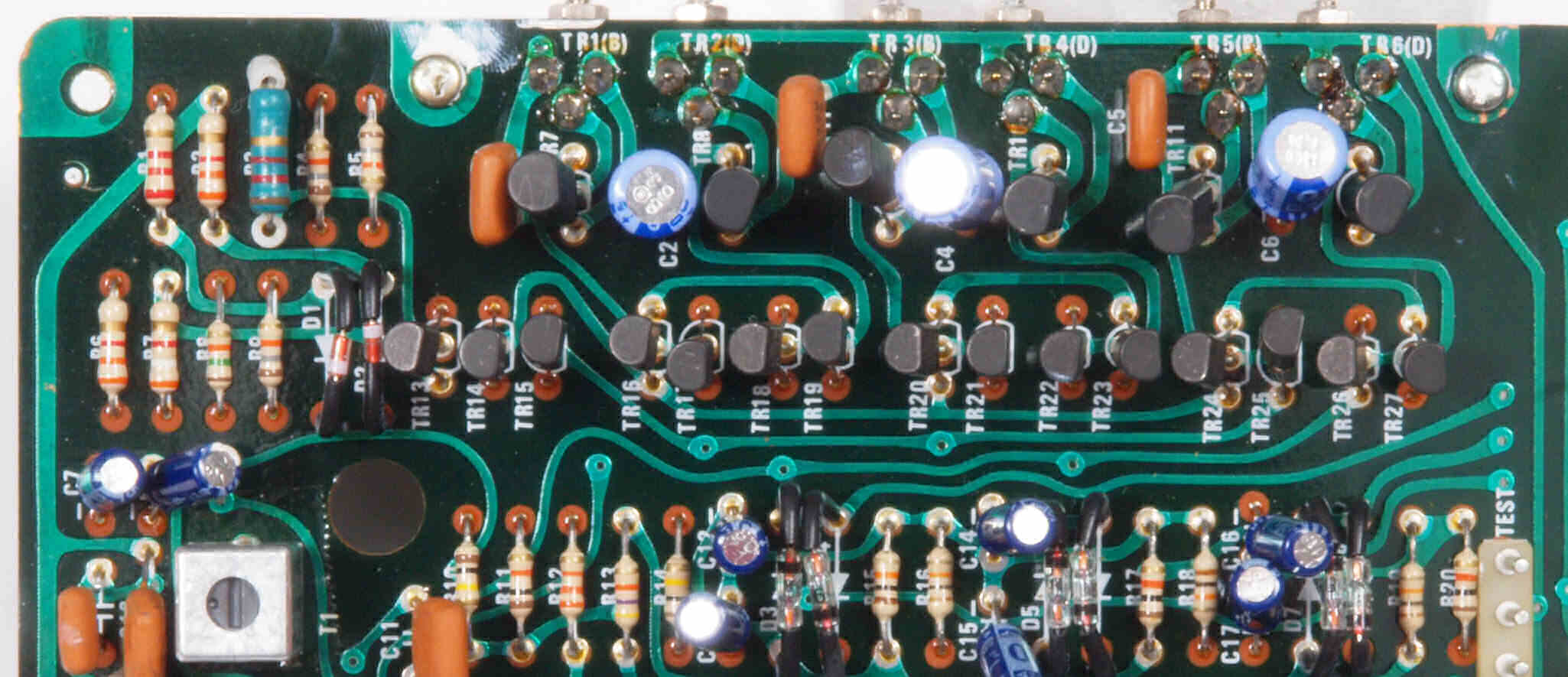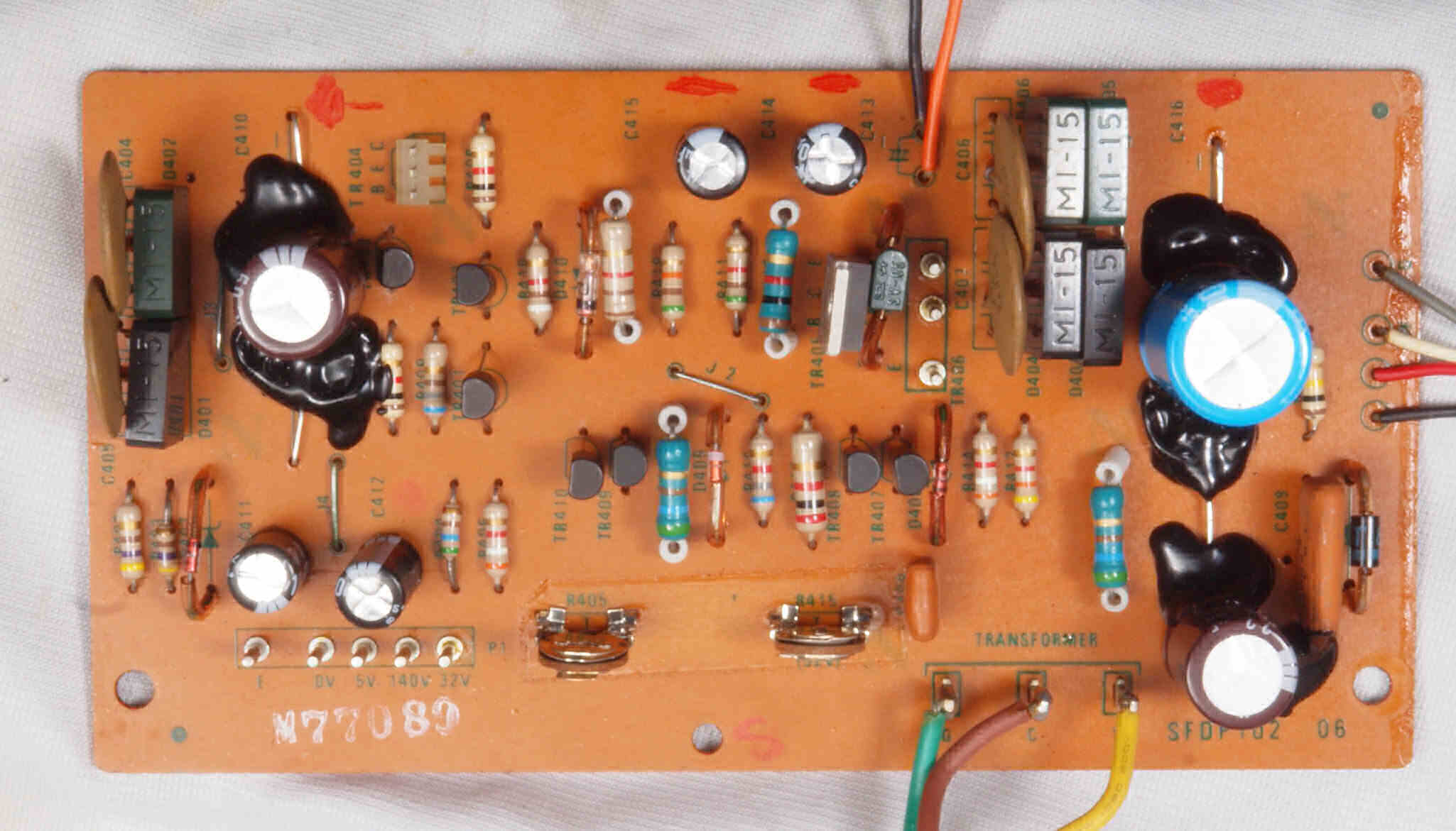 | C12. 修理後 電源定電圧基板 電解コンデンサー7個、半固定VR2個、TR(トランジスター)2個交換 | ||||||||||||||||||||||||||||||||||||