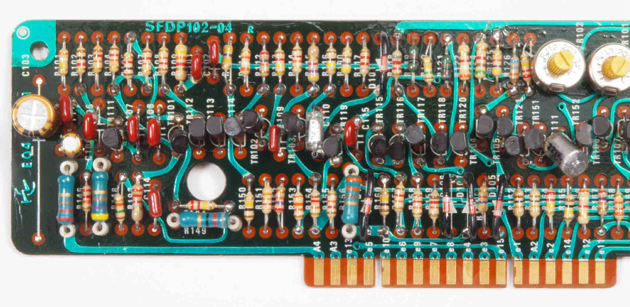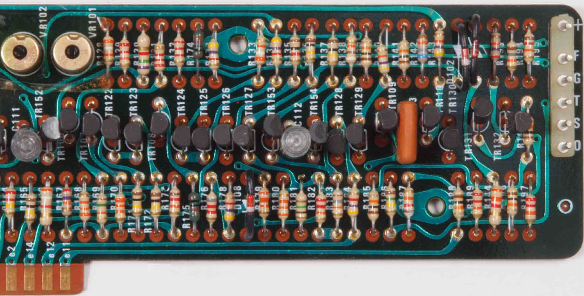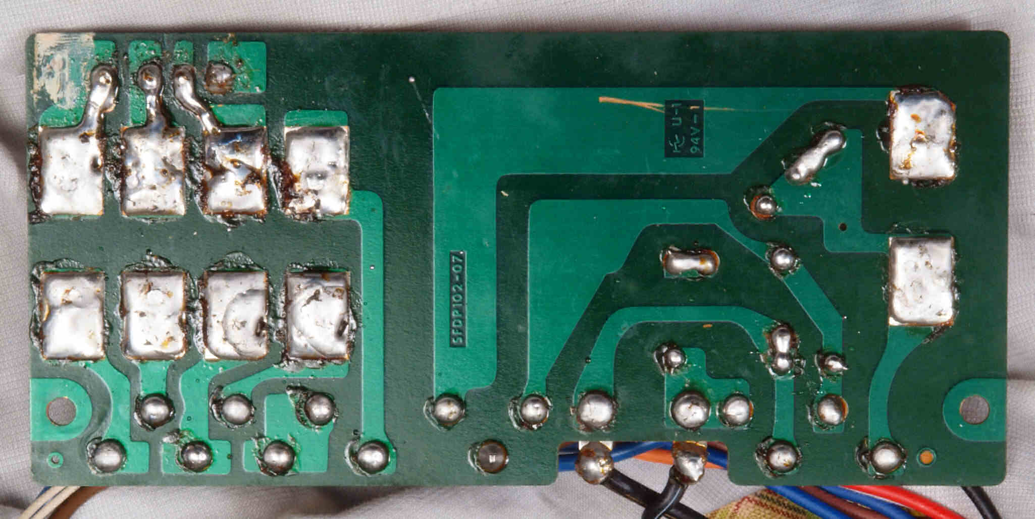 | C95. 修理(半田補正)後 メイン基板裏。全ハンダをやり直す。電解コンデンサー1個、フイルムコンデンサー2個交換。 | ||||||||||||||||||||||||||||||||||||
