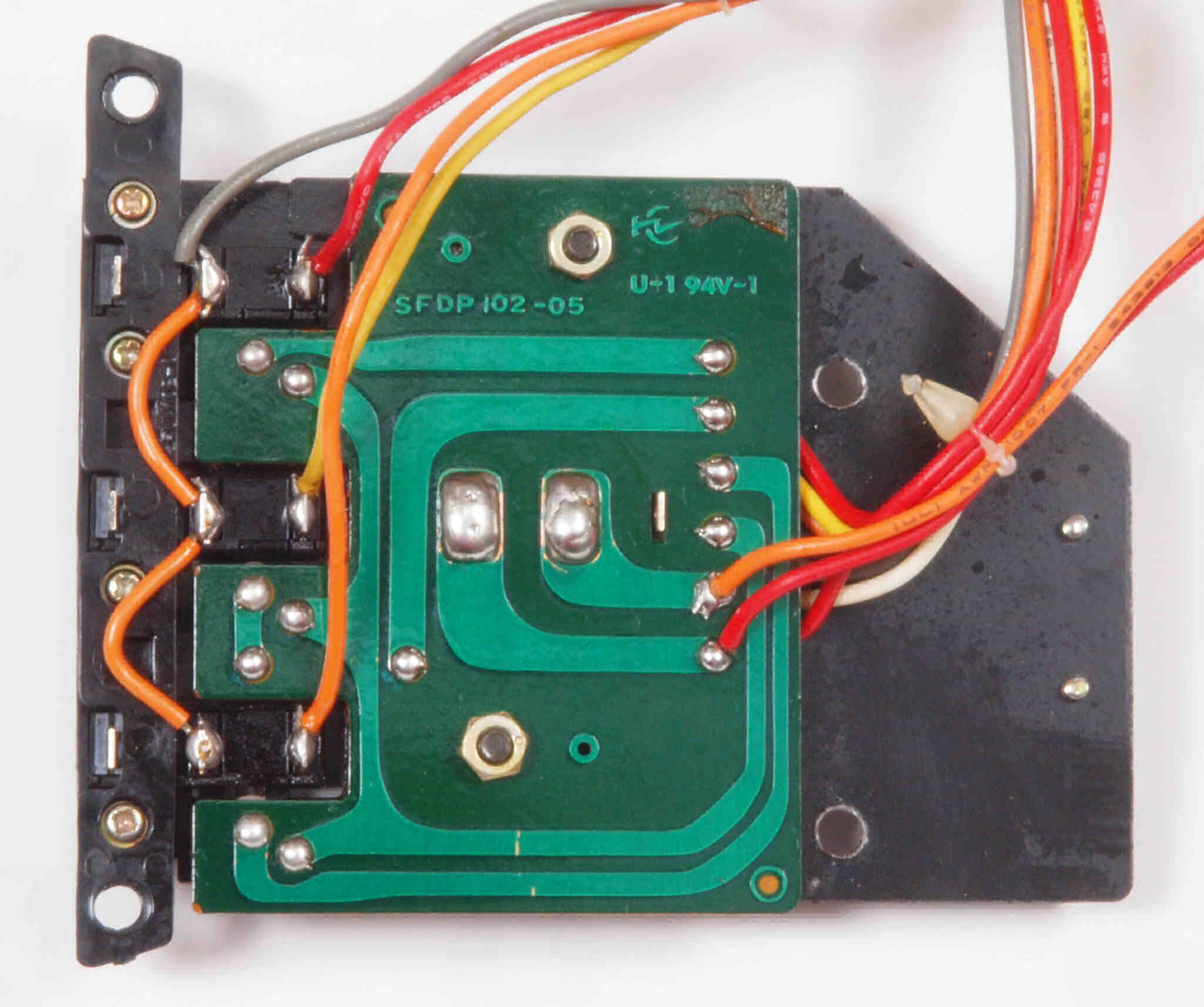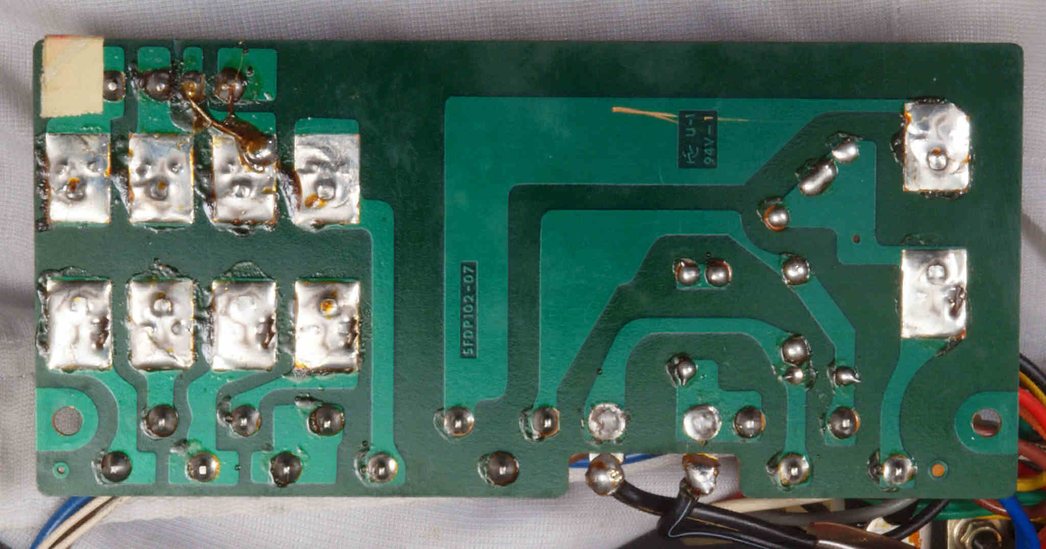 | C85. 修理(半田補正)後 速度制御基板裏。全ハンダをやり直す、フイルムコンデンサー1個追加。 | ||||||||||||||||||||||||||||||||||||