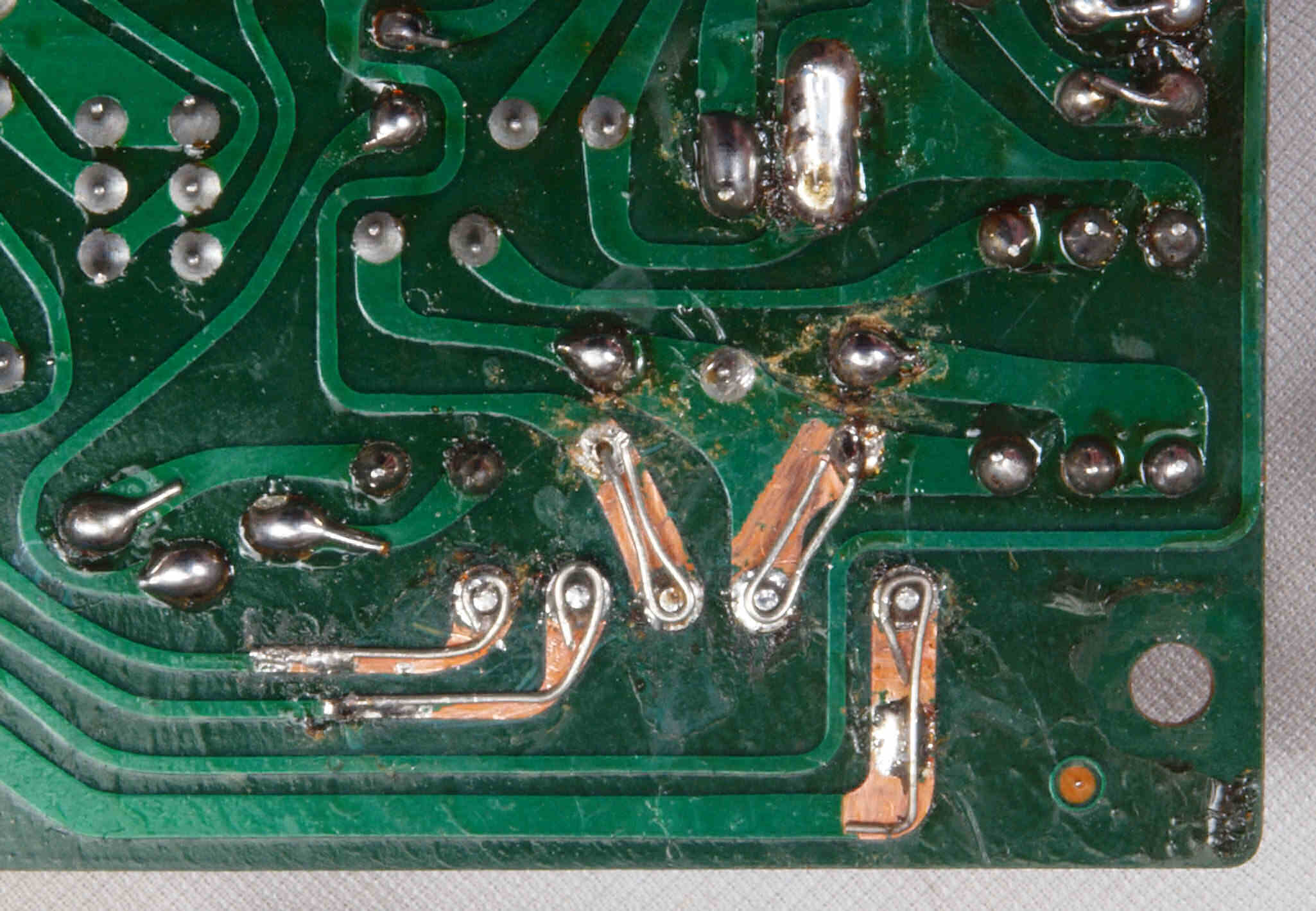 | C941. 修理中 メイン基板裏、銅箔半田広げる。 | ||||||||||||||||||||||||||||||||||||