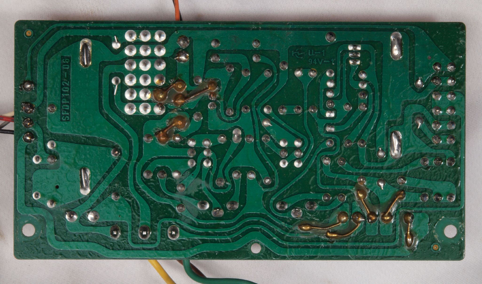 C45. 修理(半田補正)後 基板裏。全ハンダをやり直す。