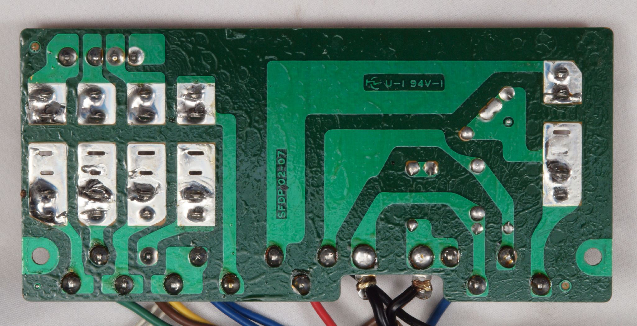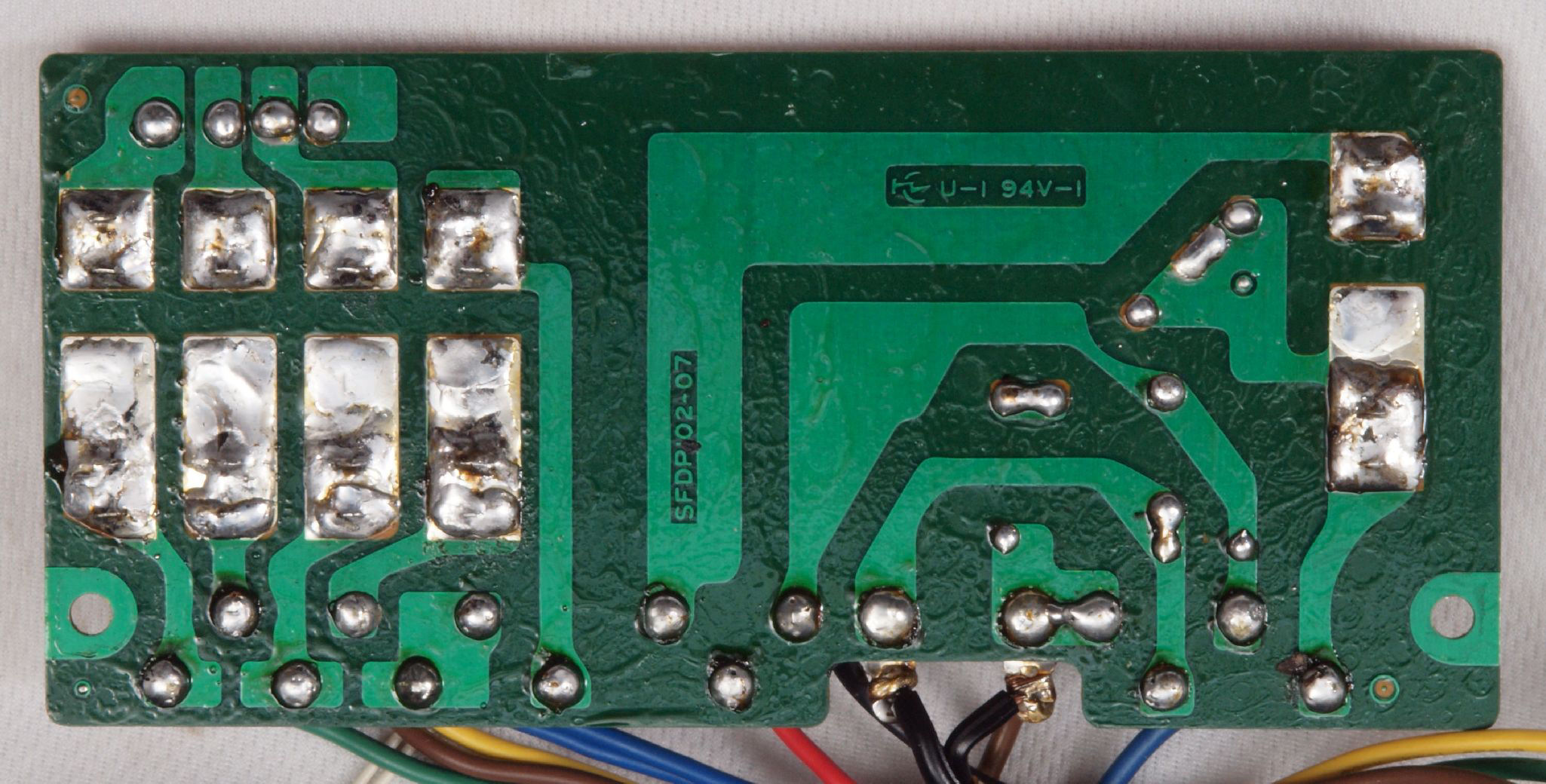 C23. 修理(半田補正)後 電源ヒューズ基板裏。全ハンダをやり直す。