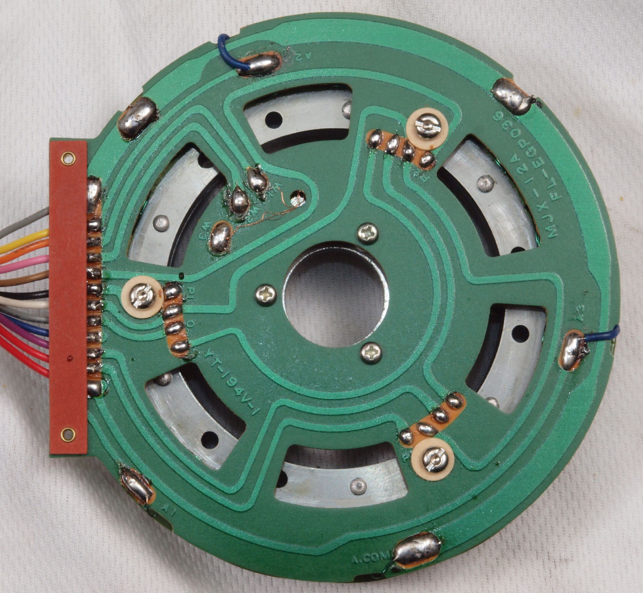 M63. 完成固定子巻線基板裏。 余分なフラックスを落として洗浄し、コート液を塗る。