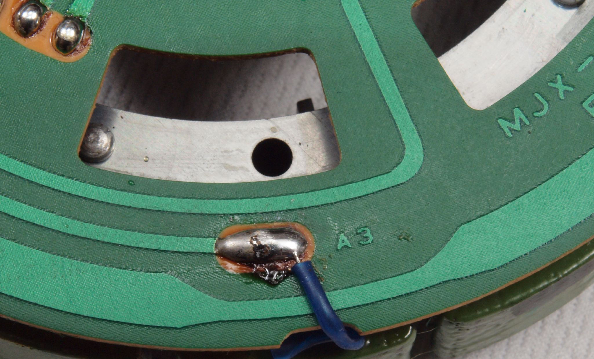 M67. 修理後 アマチュアコイルの引き出し線A3、拡大。