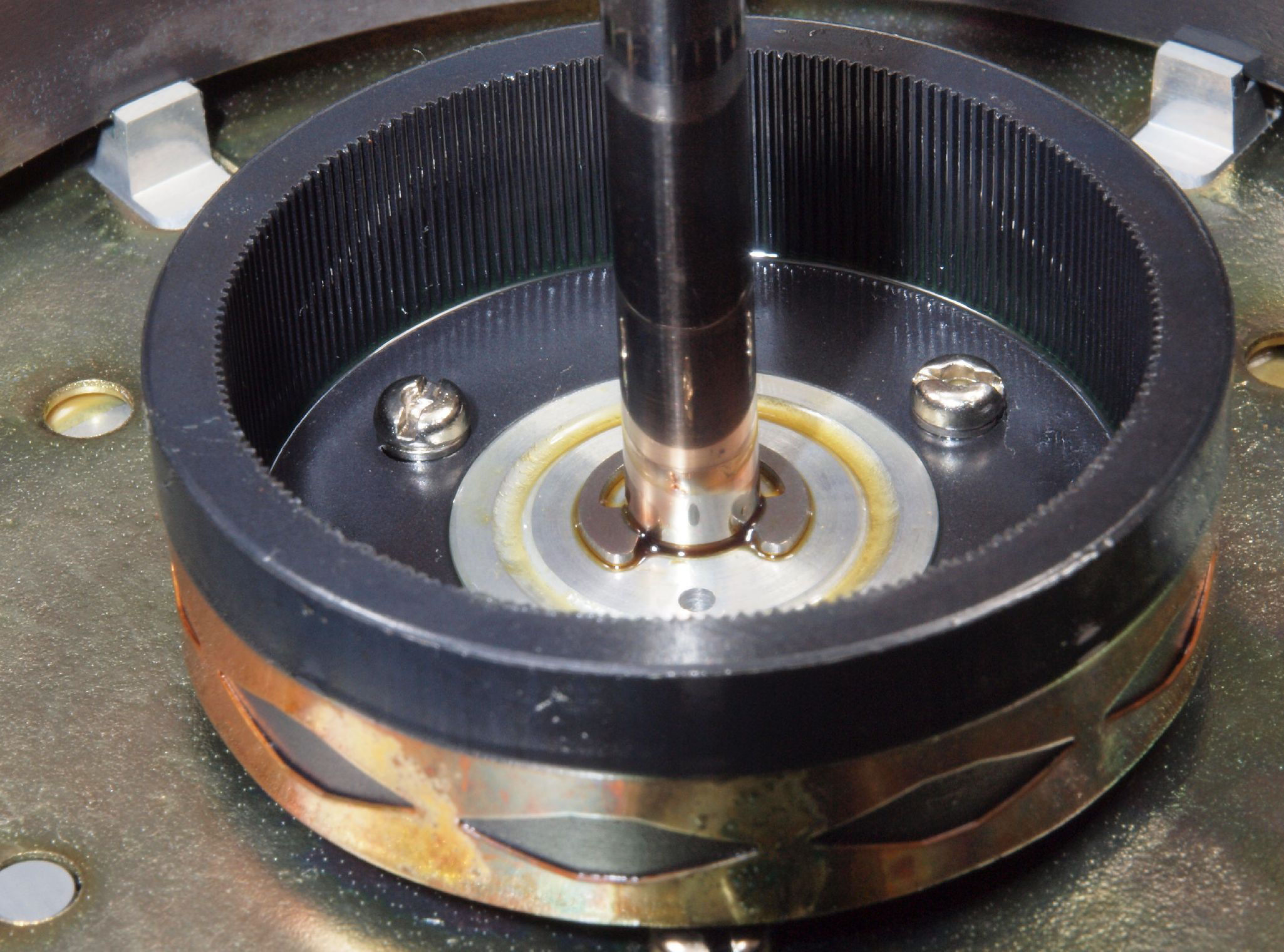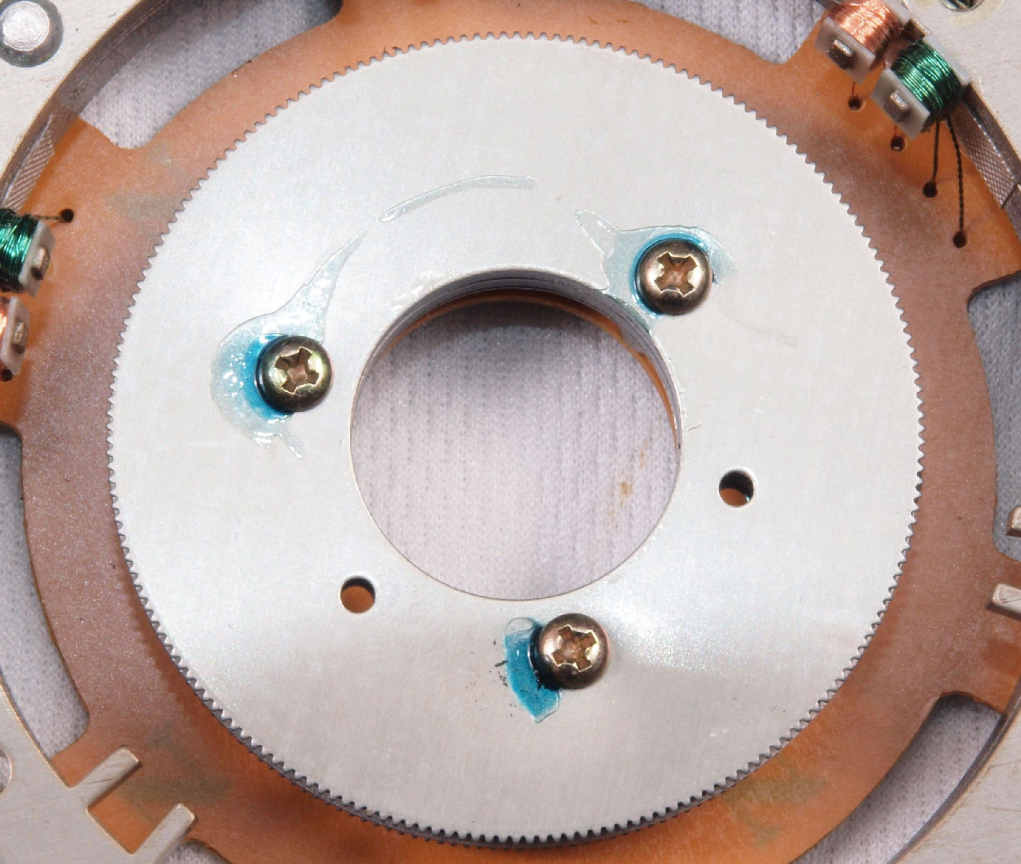 M44. 修理後 モータ回転子裏、反対側。 今後の為、錆止めを軽く塗布する。