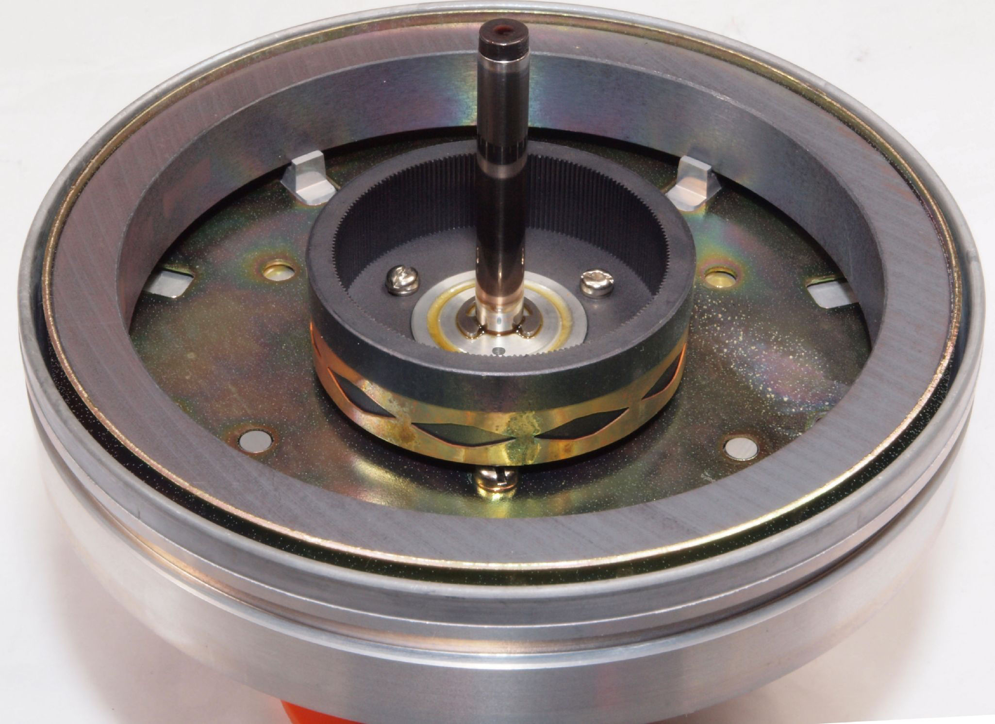 M43. 修理前 モータ回転子裏、反対側。表面に赤いサビが発生している。