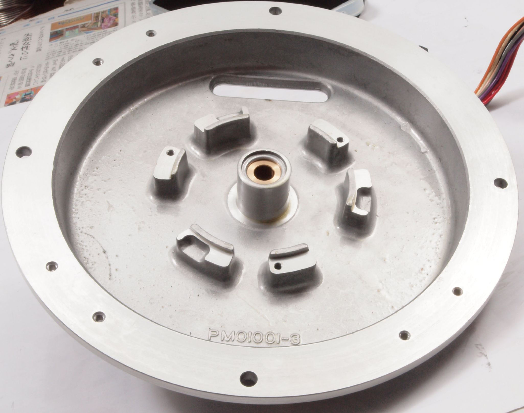 | M43. 修理前 モータ回転子裏、反対側。表面に赤いサビが発生している。 | ||||||||||||||||||||||||||||||||||||