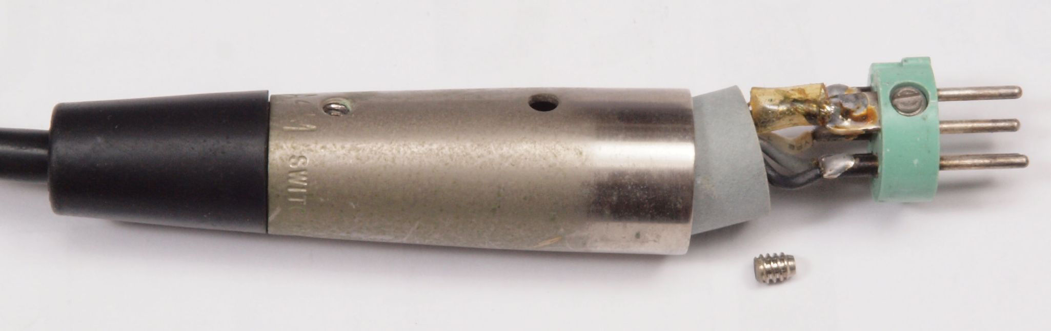 | A76. 点検中 電源供給XLRプラグ・コネクター。上=NEUTRIC製金メッキ端子に交換可能。下=純正品。今回見送。 | ||||||||||||||||||||||||||||||||||||