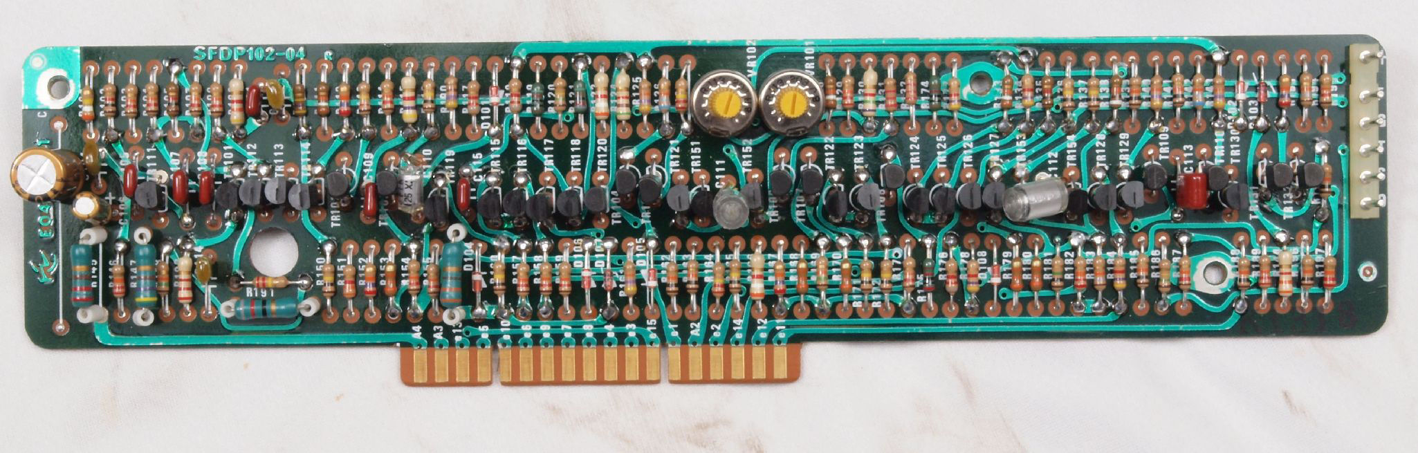 | C43. 修理後 基準発生・速度切替え分周基板 電解コンデンサー7個、フイルムコンデンサー16個交換 | ||||||||||||||||||||||||||||||||||||