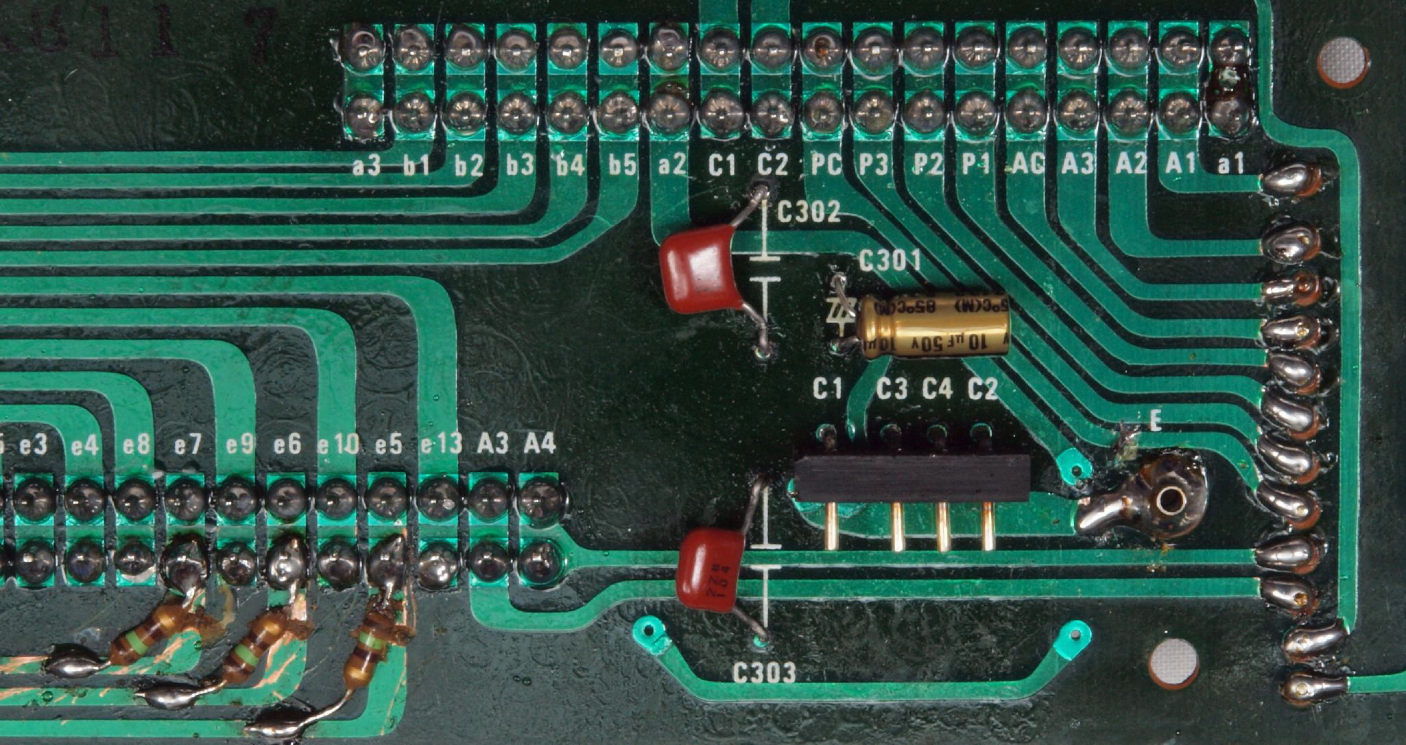 | C78. 修理(半田補正)後 メイン基板裏。全ハンダをやり直す。電解コンデンサー1個、フイルムコンデンサー2個交換。 | ||||||||||||||||||||||||||||||||||||