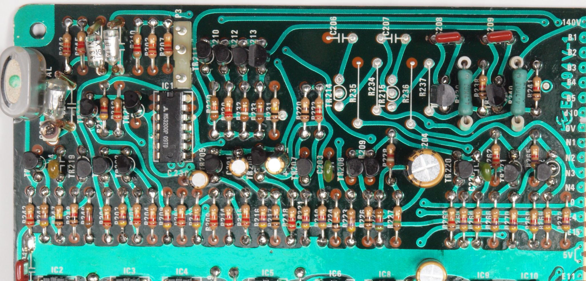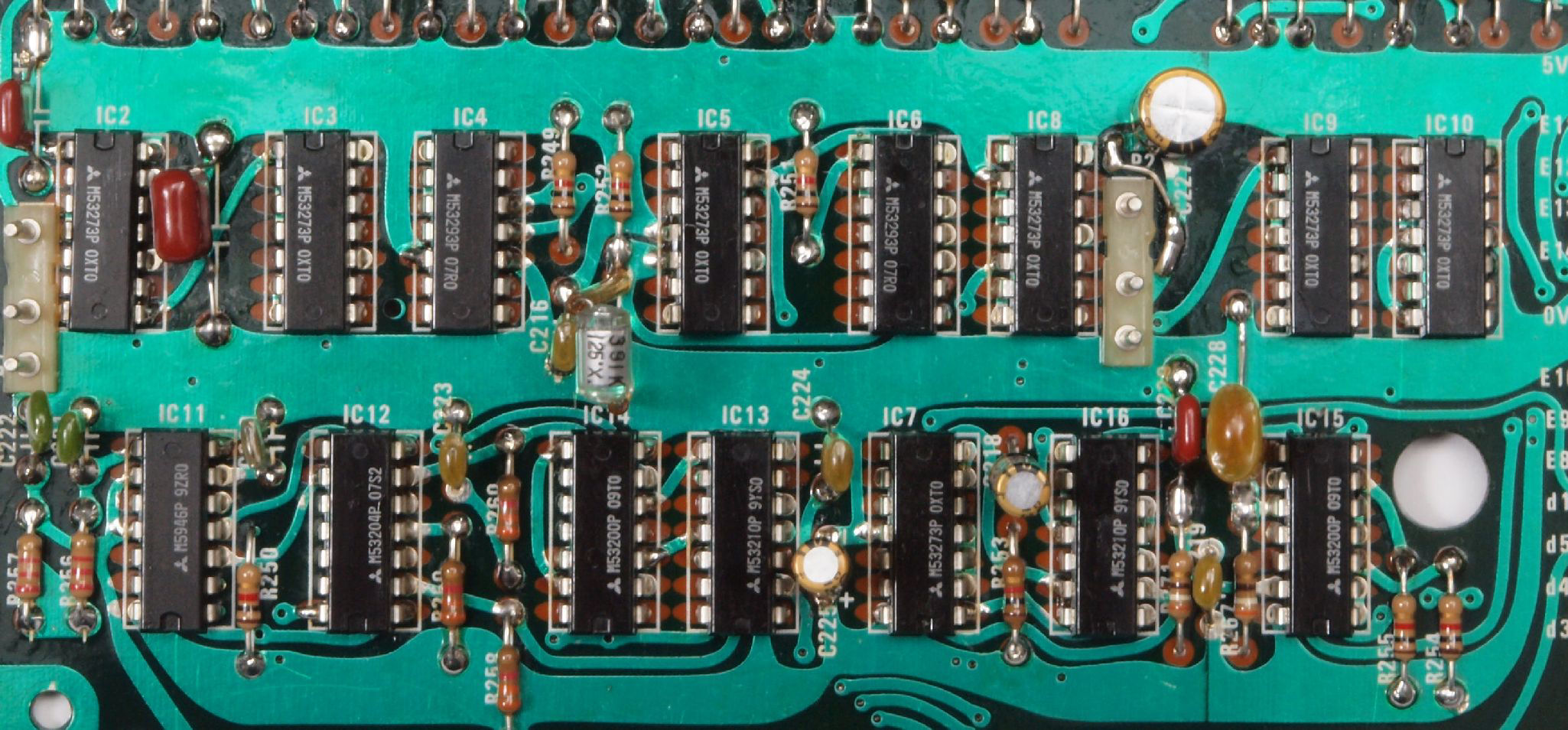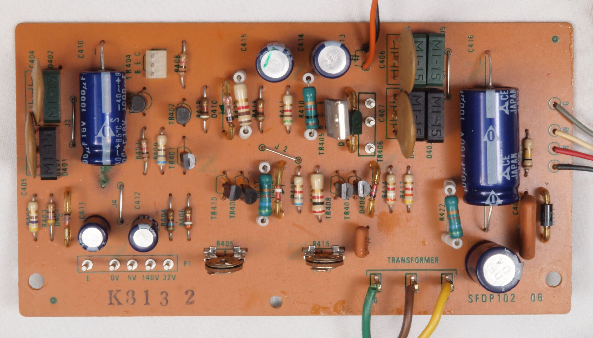| C73. 修理(半田補正)後 メイン基板。全ハンダをやり直す。電解コンデンサー1個、フイルムコンデンサー2個交換。 | ||||||||||||||||||||||||||||||||||||