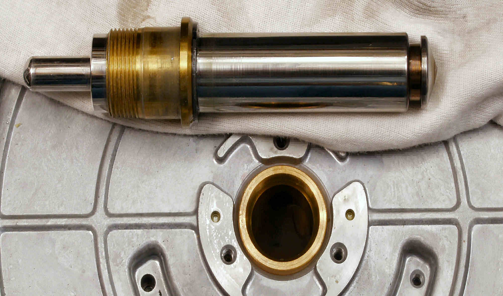 | CM−1C. 修理中 軸のグリスアップ。 軸のキズの拡大。 |