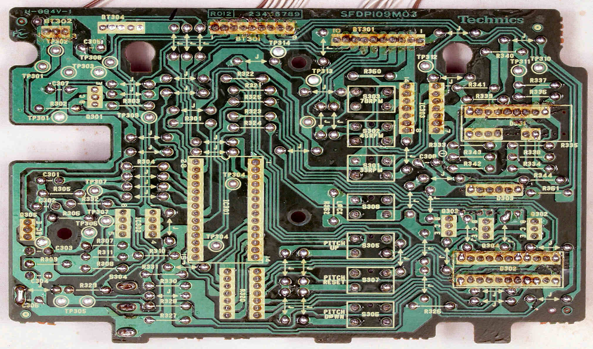 | C−9B. 修理(半田補正)後 ターンテーブル操作基板裏 | ||||||||||||||||||||||||||||||||||||||