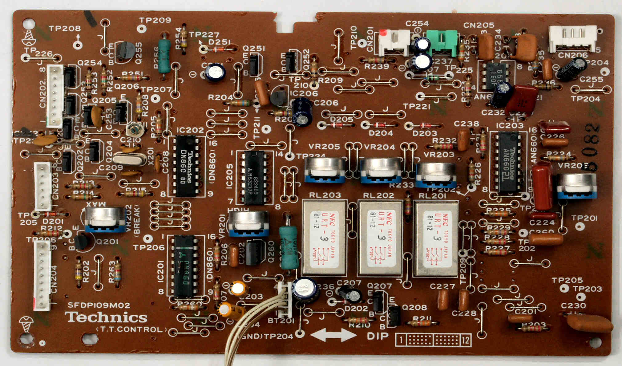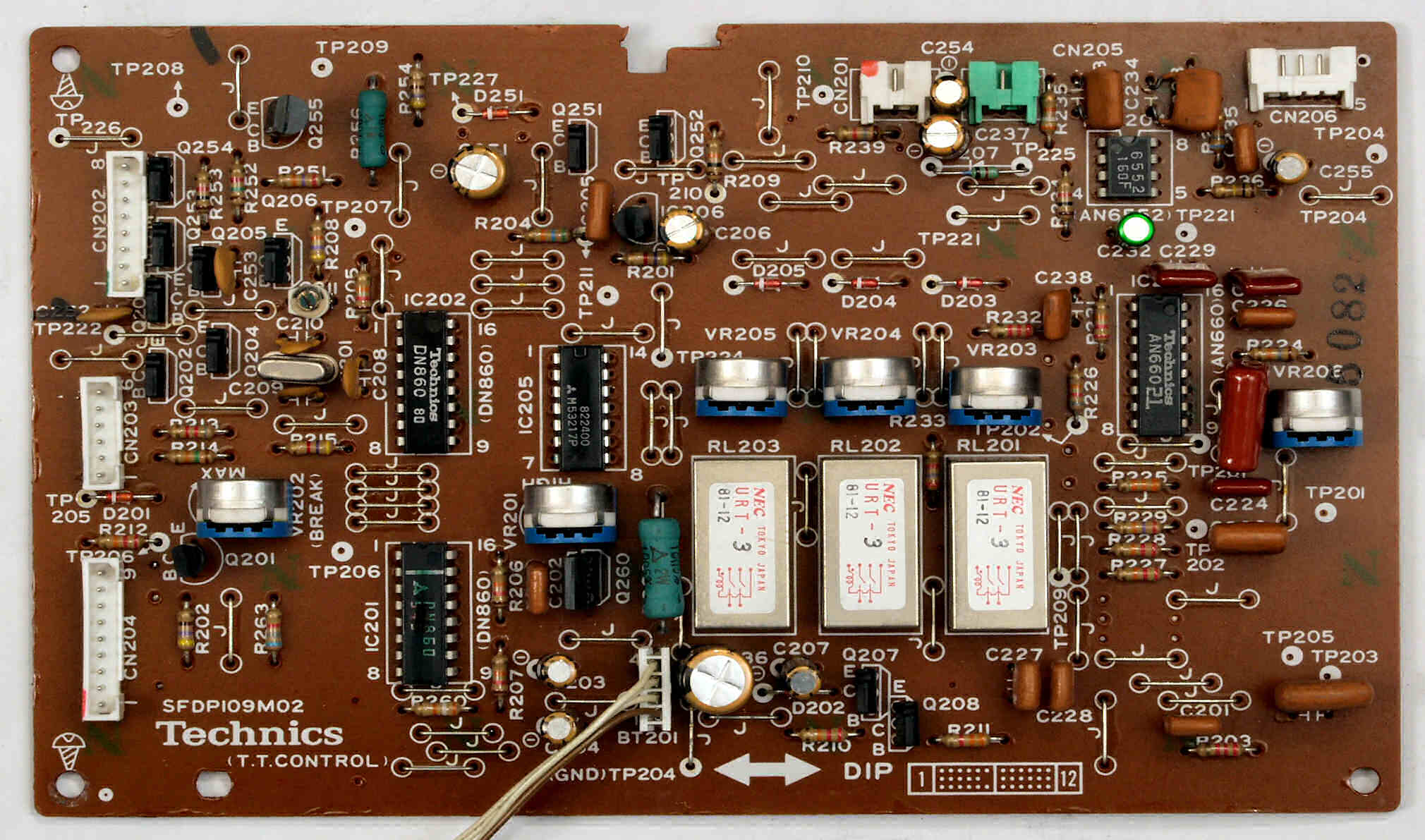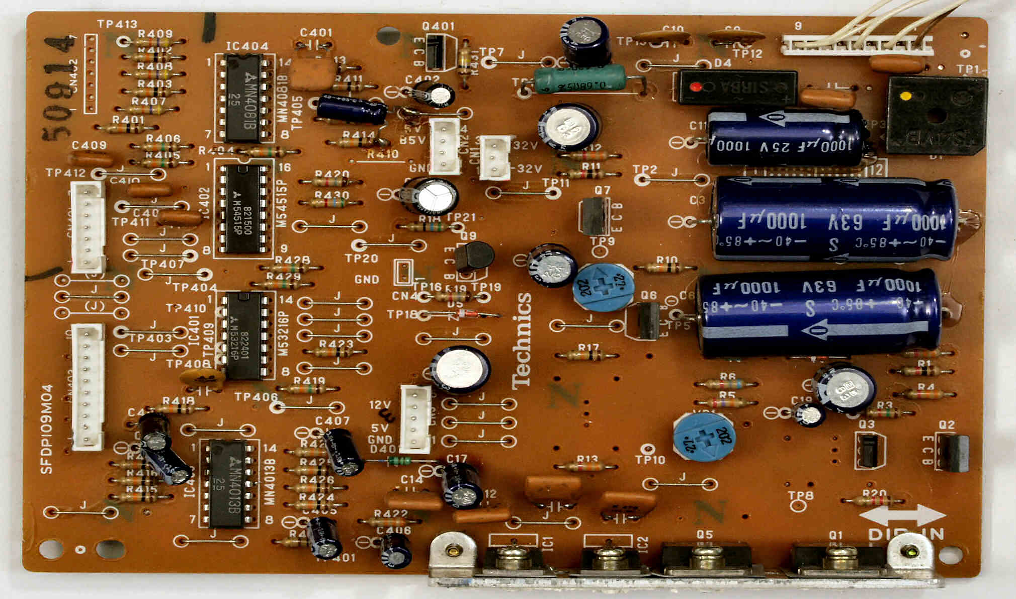 C−4B. 修理後 制御回路基板 半固定VR5個、電解コンデンサー10個、TR(トランジスター)交換