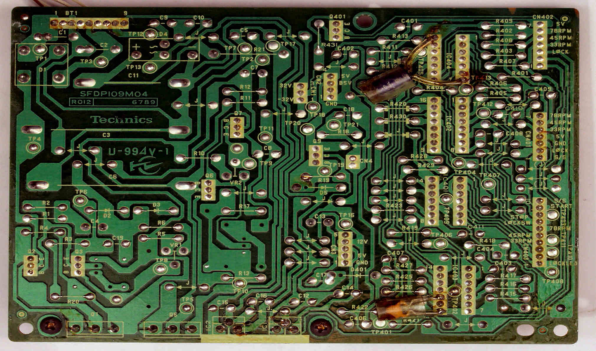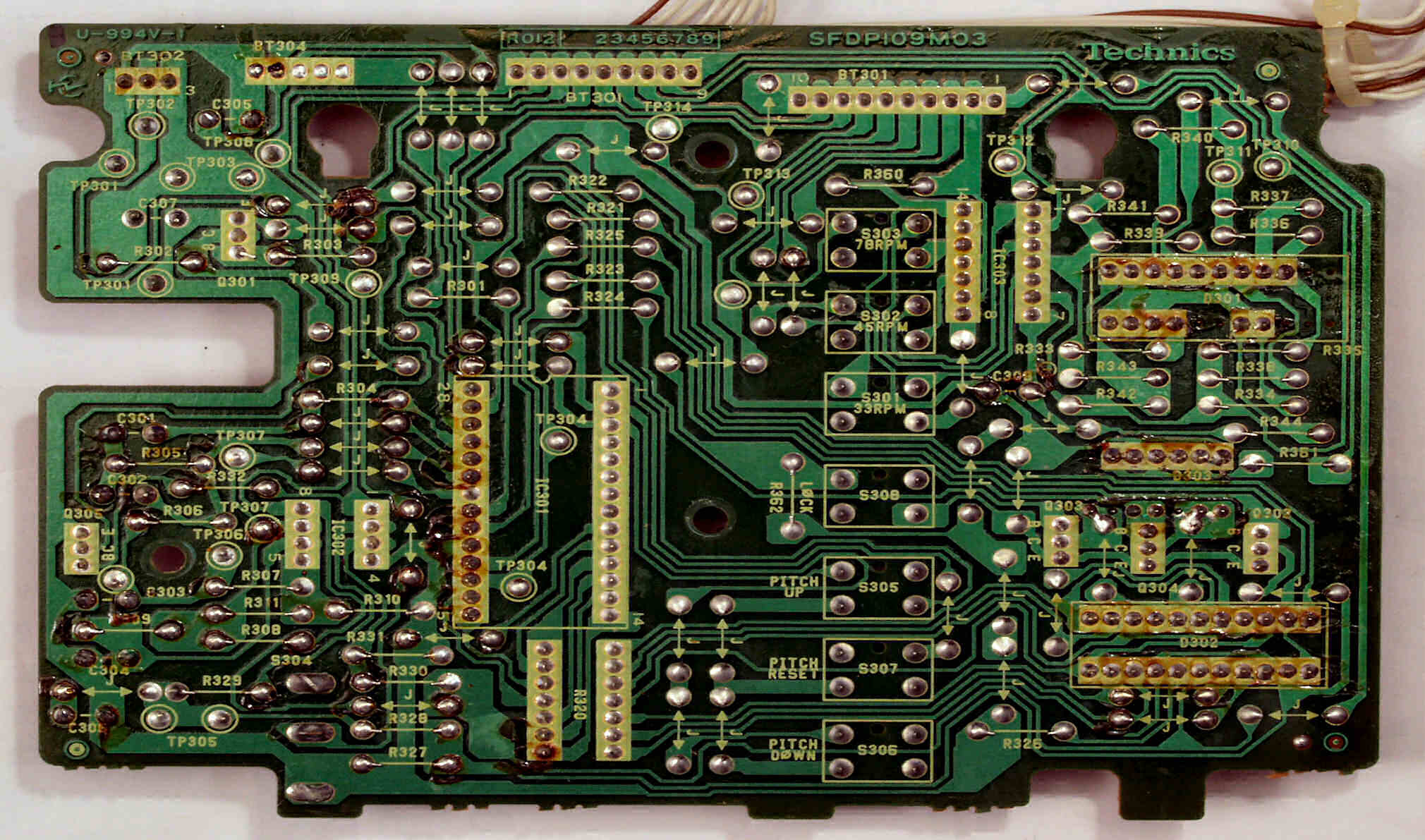 C−9B. 修理(半田補正)後 ターンテーブル操作・LED表示基板裏