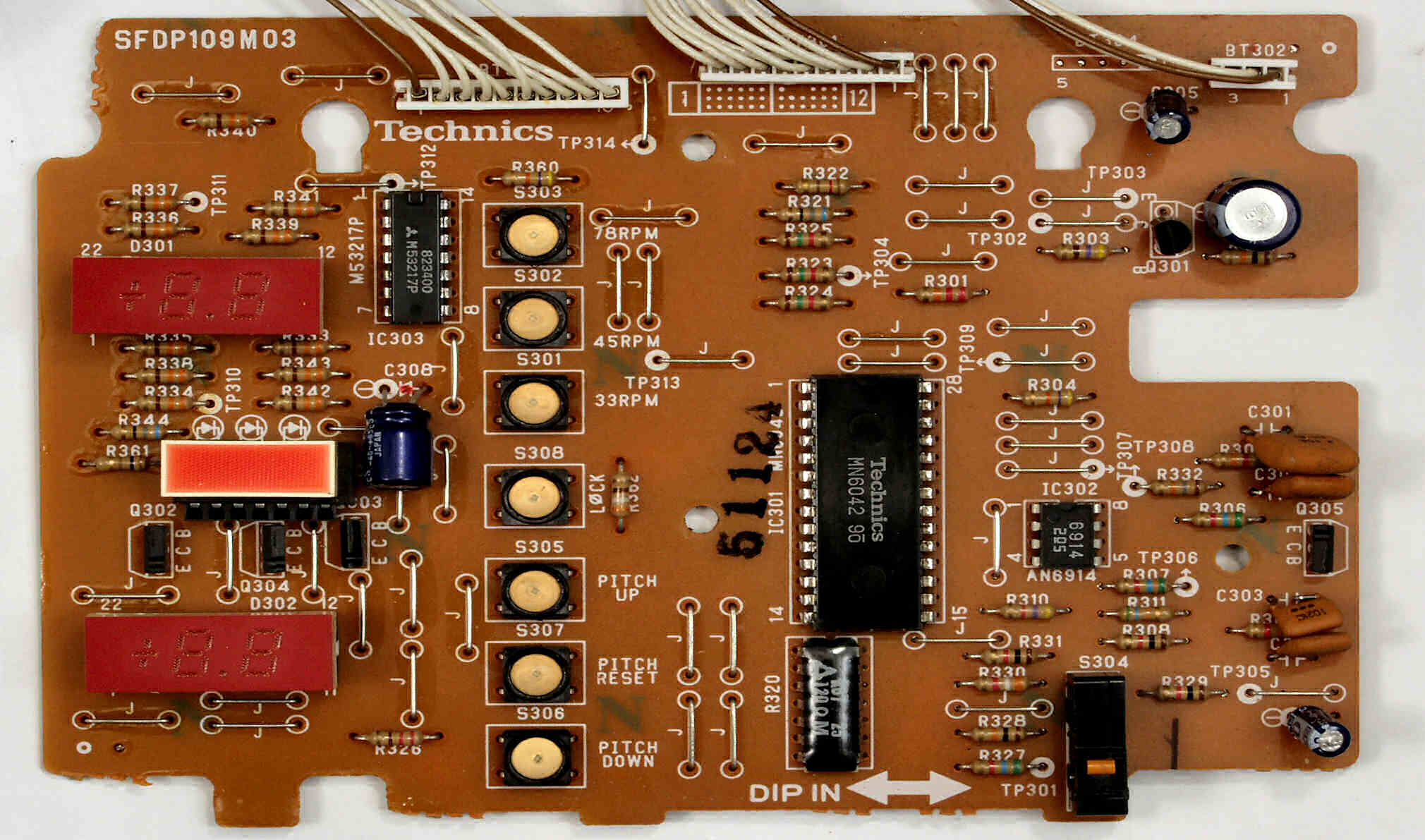 C−9A. 修理前 ターンテーブル操作・LED表示基板裏