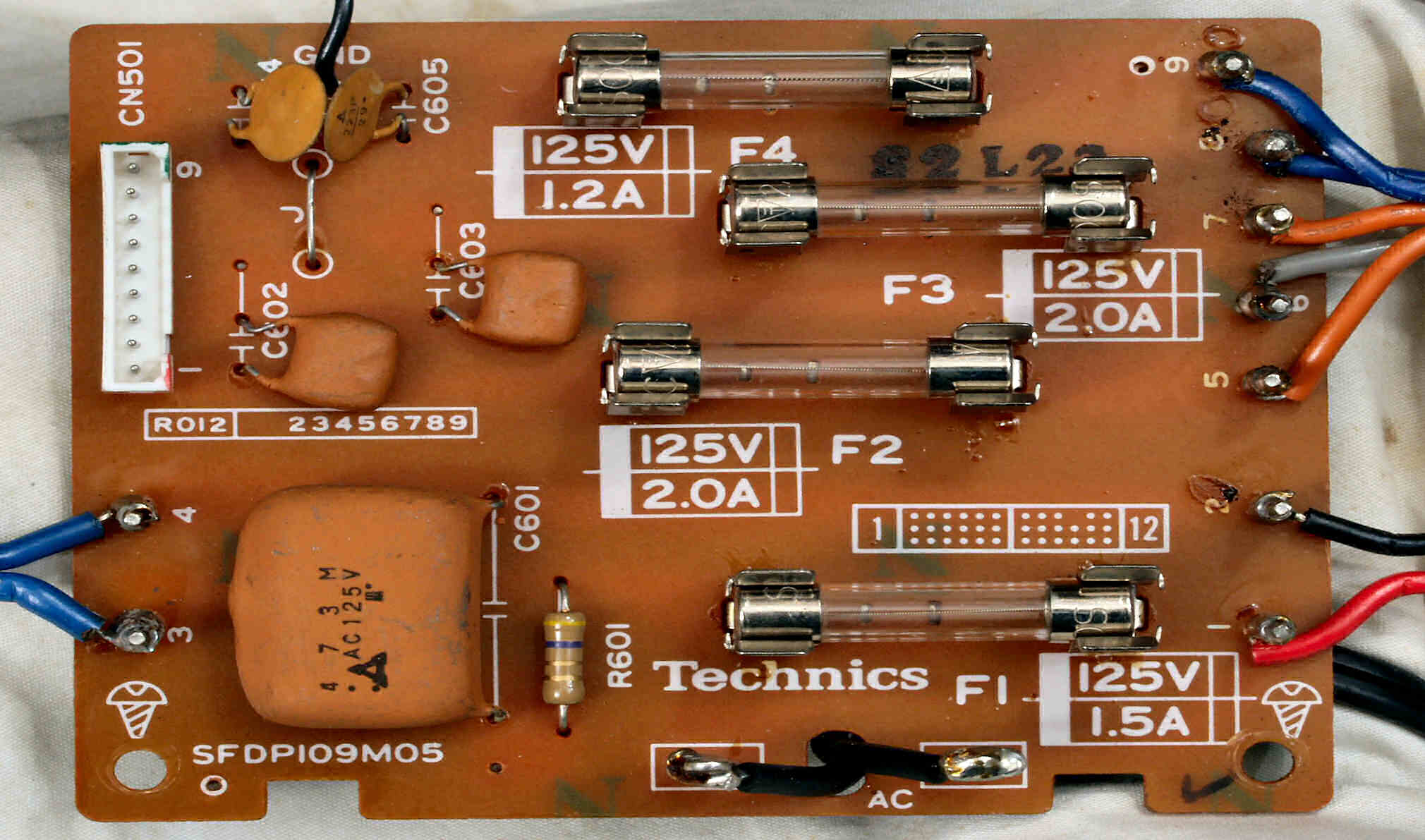 C−6F. 修理前 ヒューズ基板裏