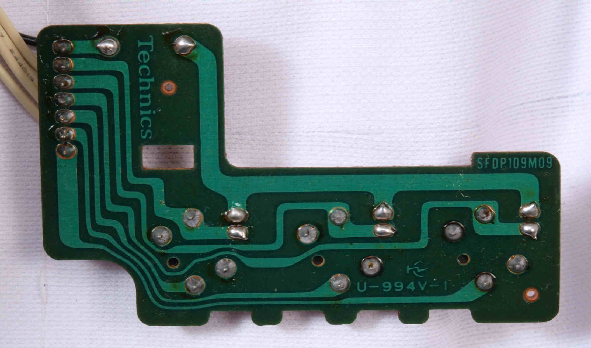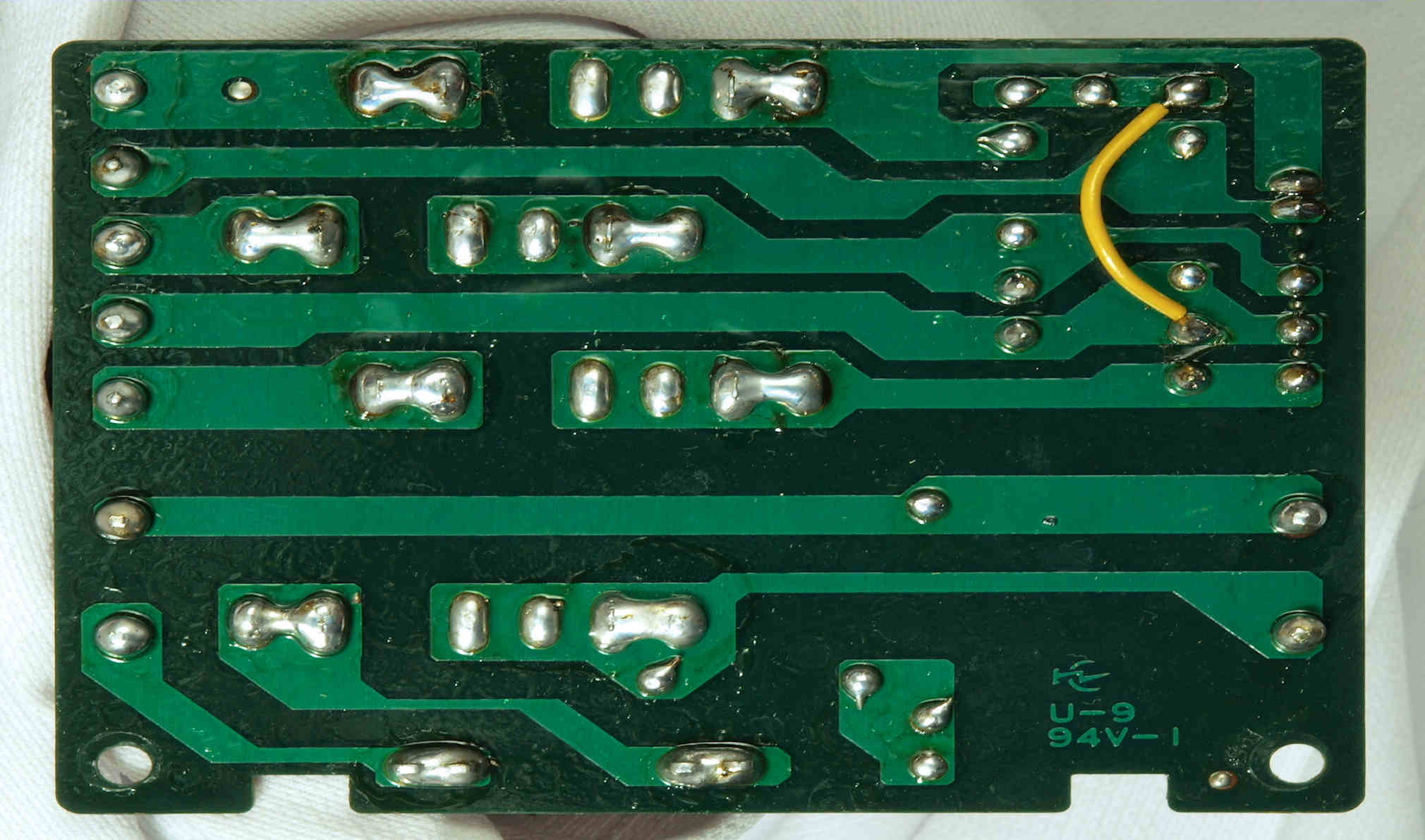 | D35. 完成ターンテーブル操作基板基板裏。 余分なフラックスを落として、コート液を塗る。 | ||||||||||||||||||||||||||||||||||||||||