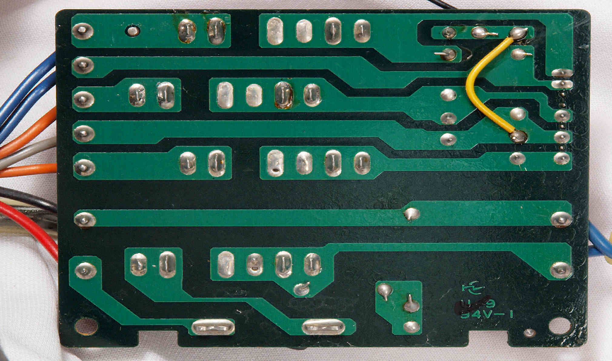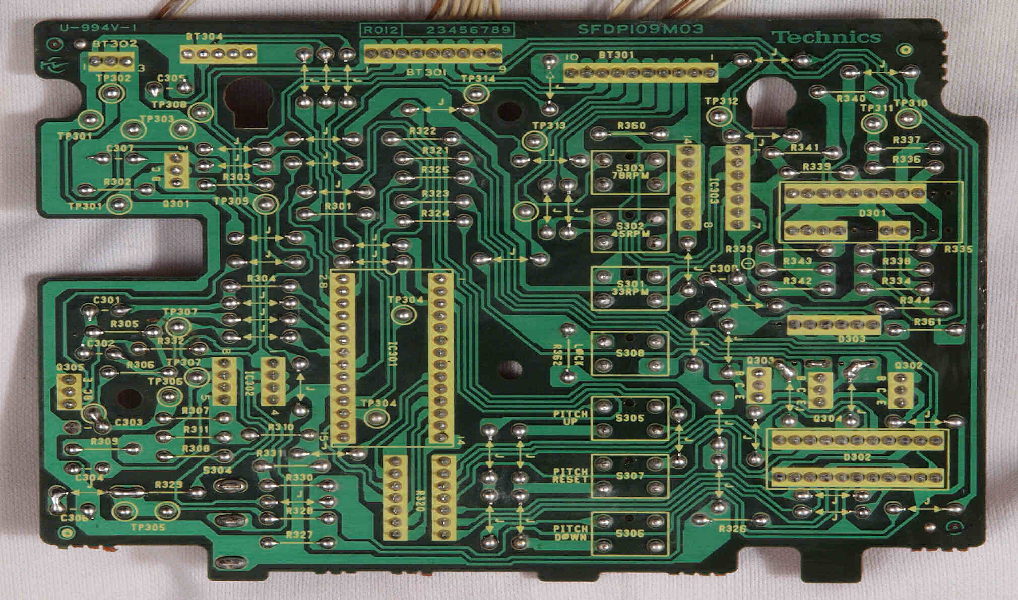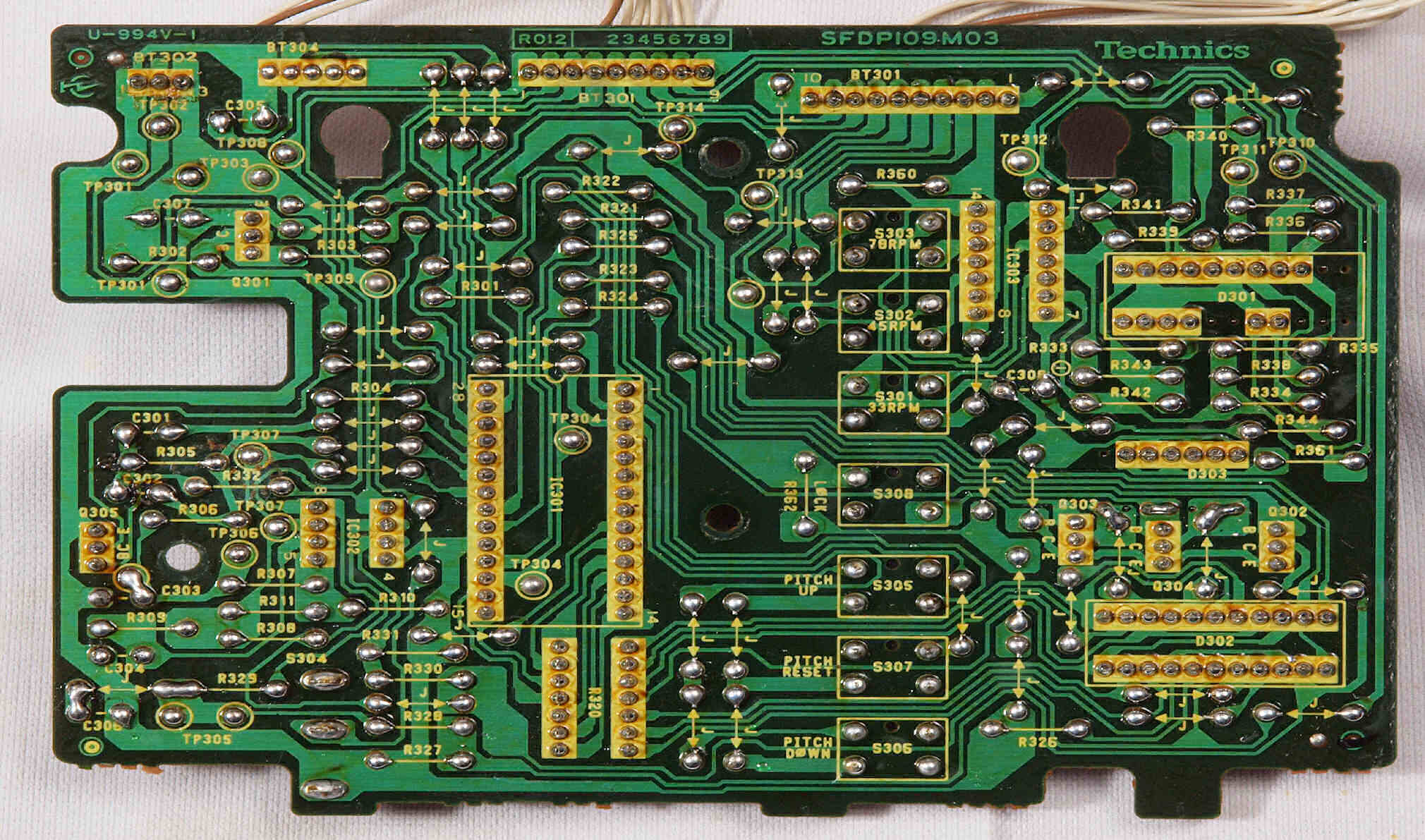 | D35. 完成ターンテーブル操作基板基板裏。 余分なフラックスを落として、コート液を塗る。 | ||||||||||||||||||||||||||||||||||||||||