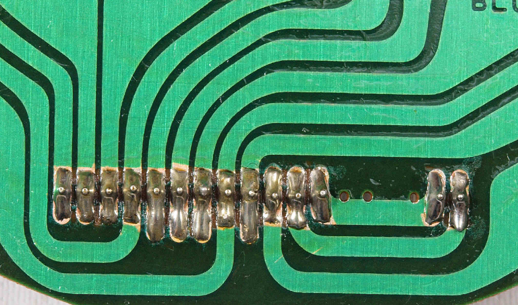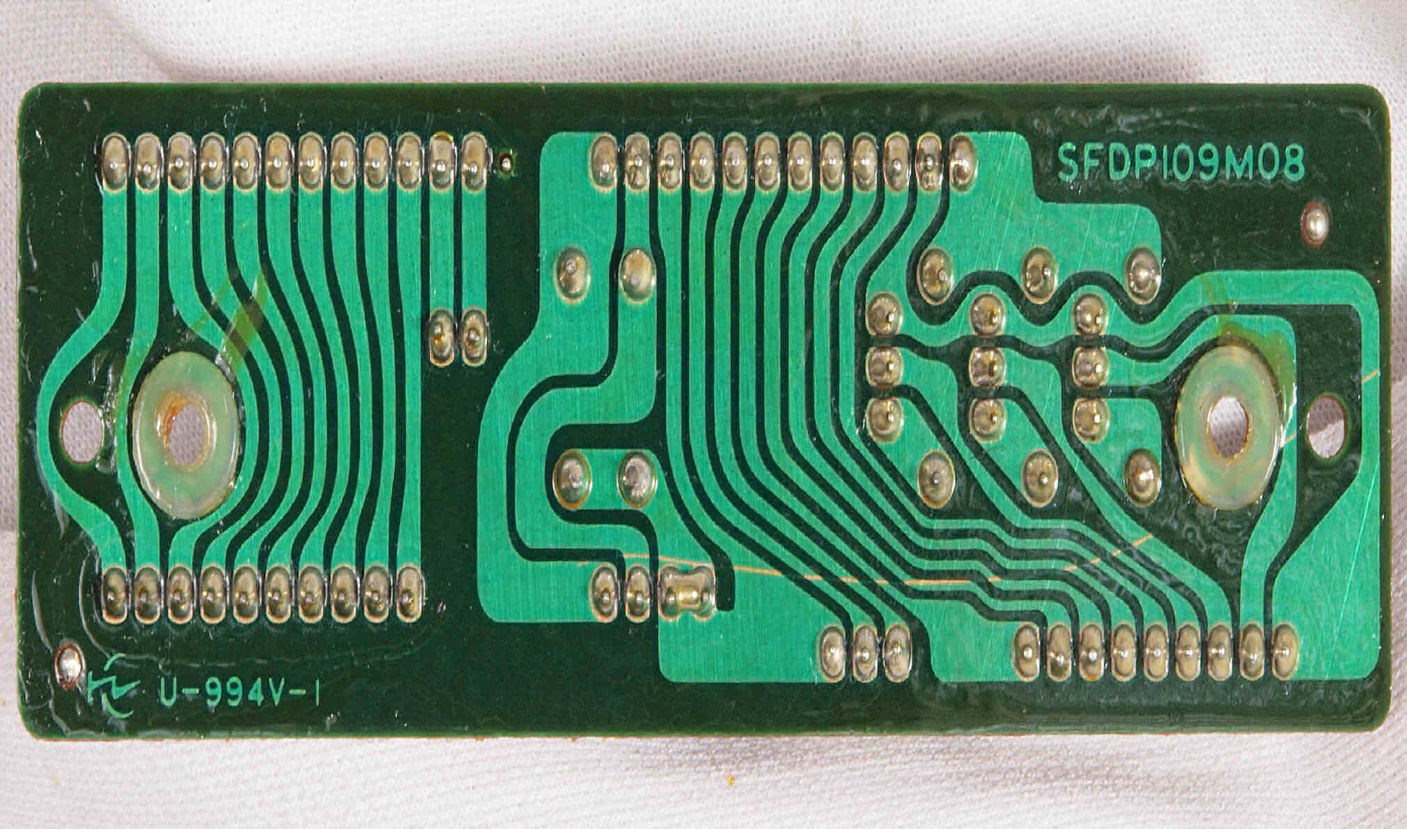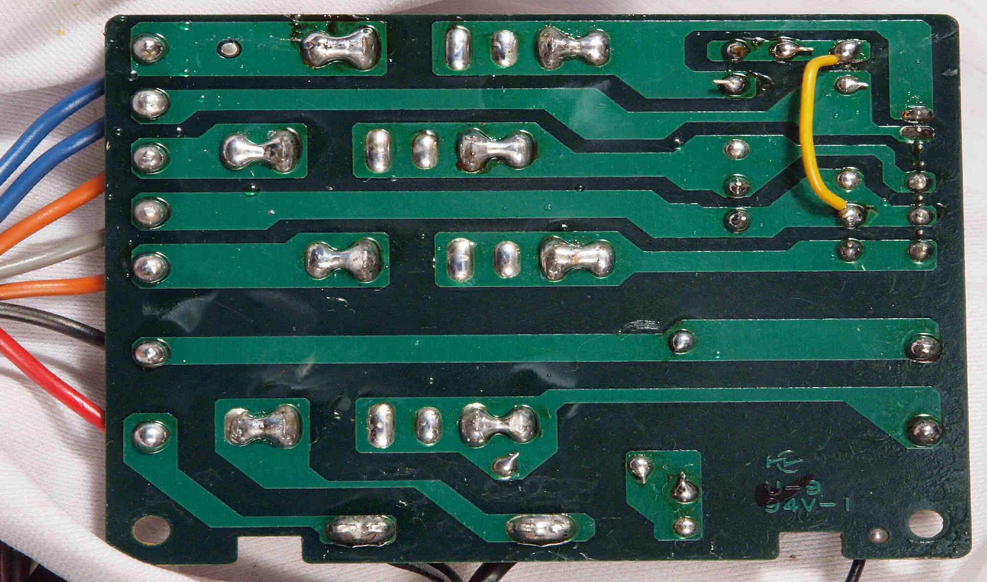 | D35. 完成ターンテーブル操作基板基板裏。 余分なフラックスを落として、コート液を塗る。 | ||||||||||||||||||||||||||||||||||||||||