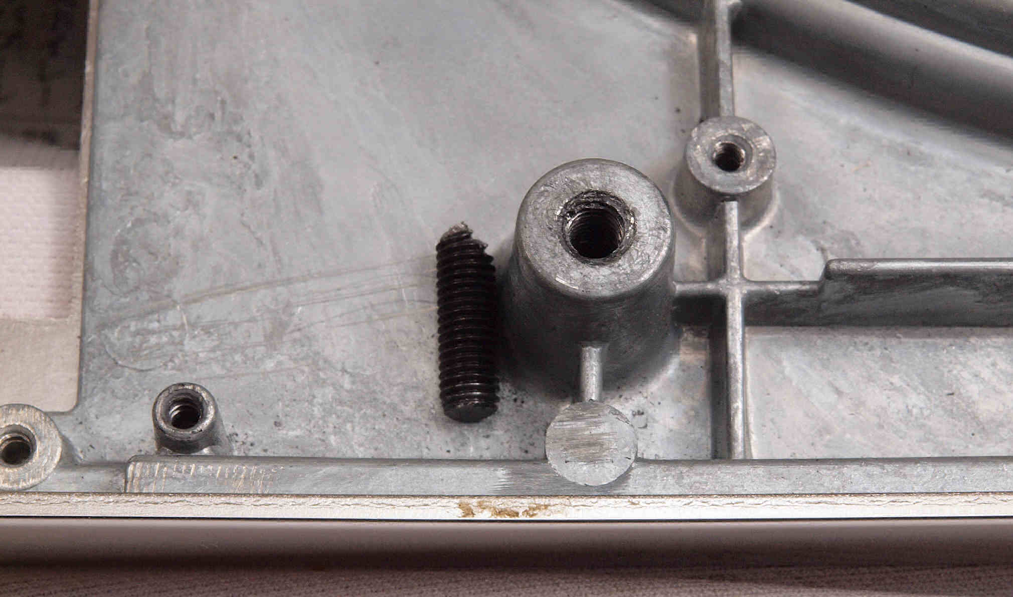 | D93. 修理前 タンテーブル固定ビス2。 強引に取り外したので止めビス折れ! | ||||||||||||||||||||||||||||||||||||||||