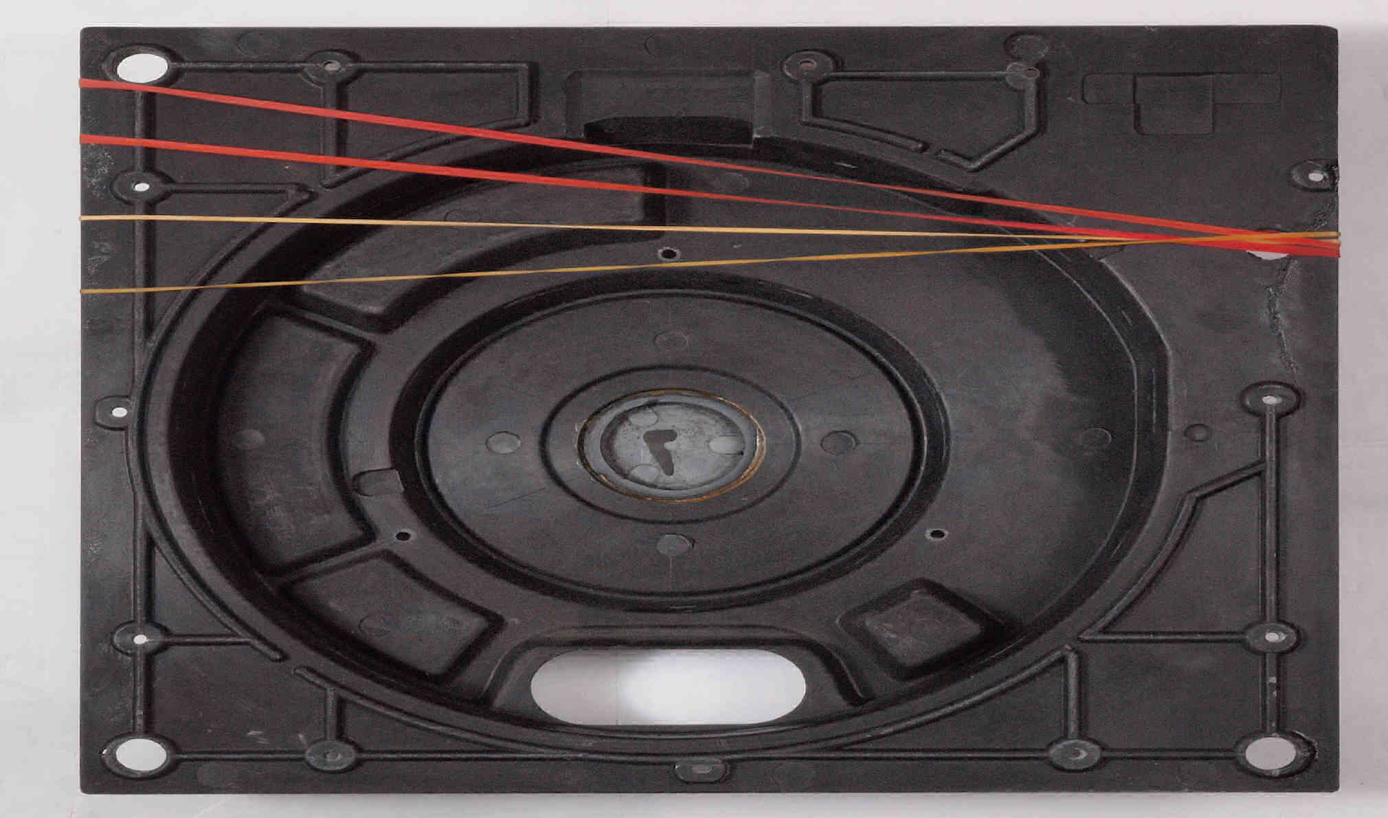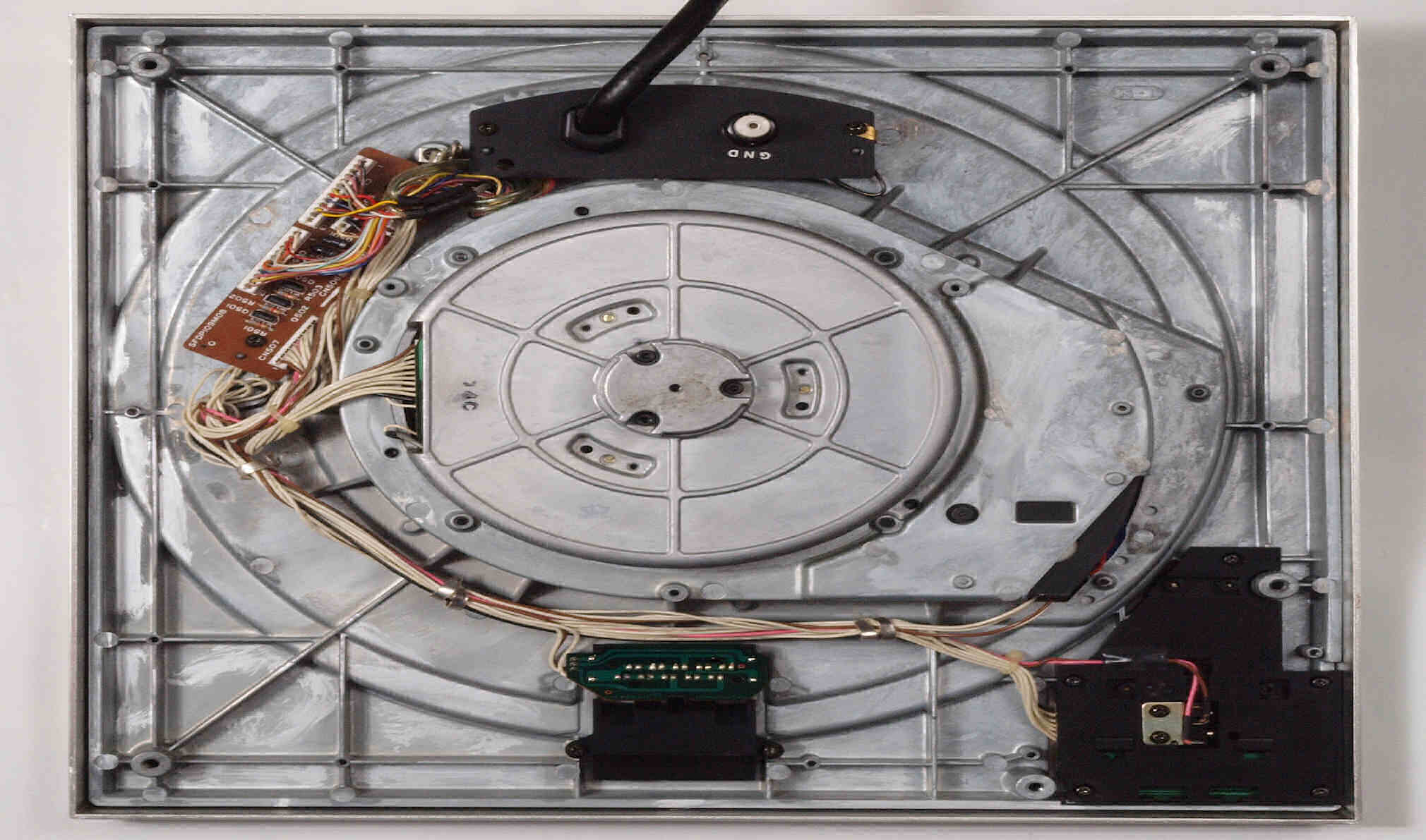 | D. 本体(タンテーブル)修理状況。 画像をクリックすると、大きく(横幅2050ドット)表示されます。 D01. 修理前 上から見る。 |