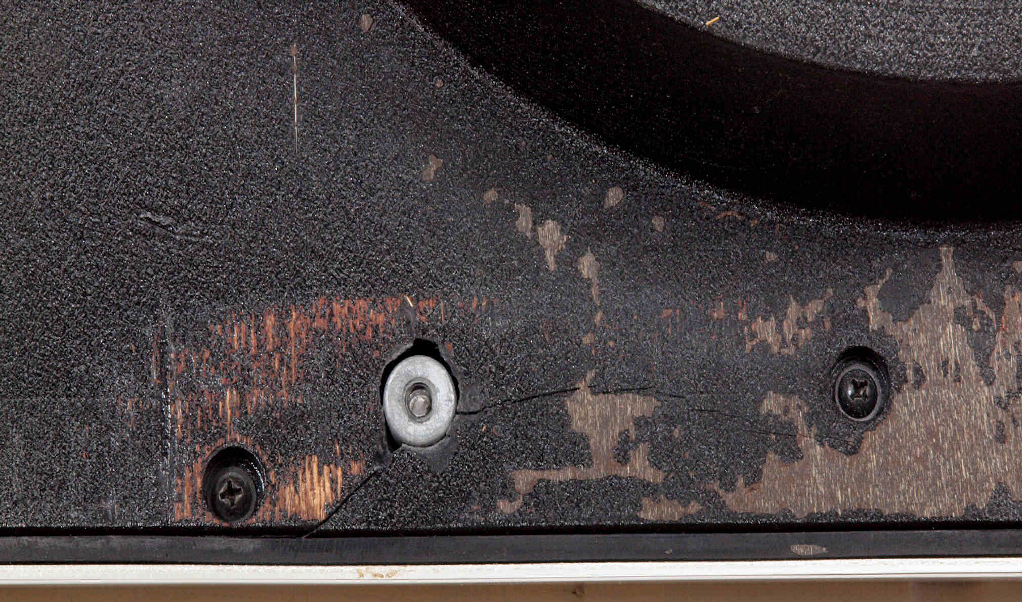 | D83. 修理前 テーブル下カバー。 強引に取り外したので止めビス折れ+ヒビ! | ||||||||||||||||||||||||||||||||||||||||