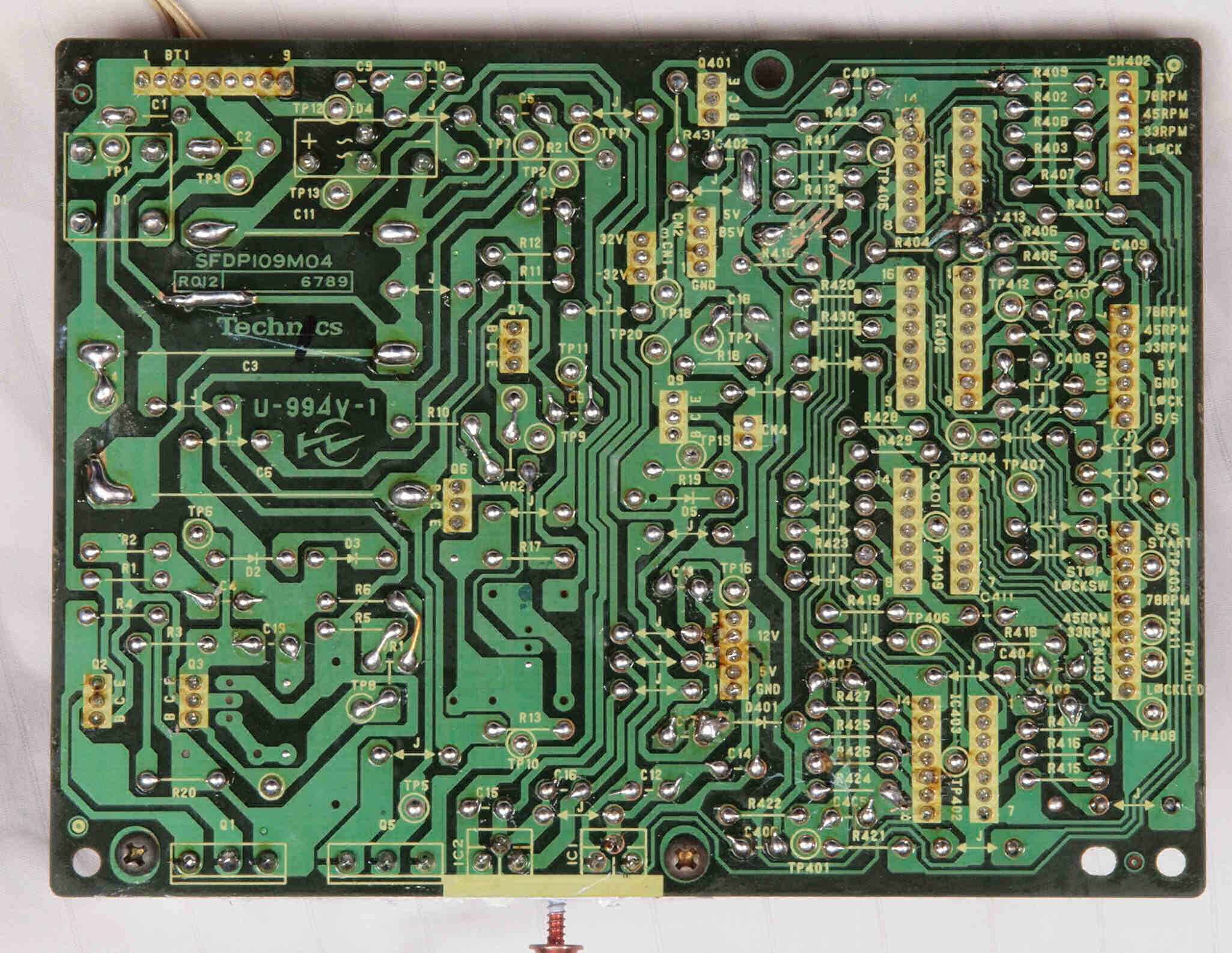 D34. 修理(半田補正)後 ターンテーブル接続基板裏