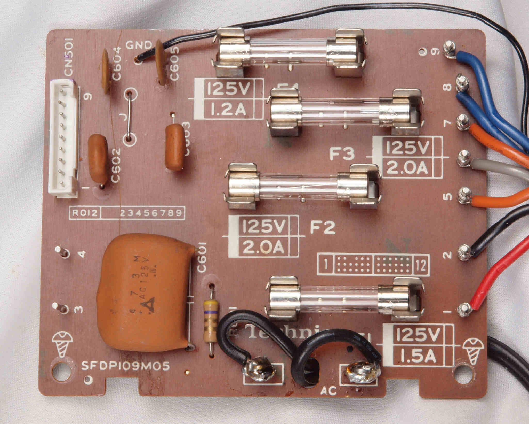 D52. 修理前 ターンテーブル接続基板裏